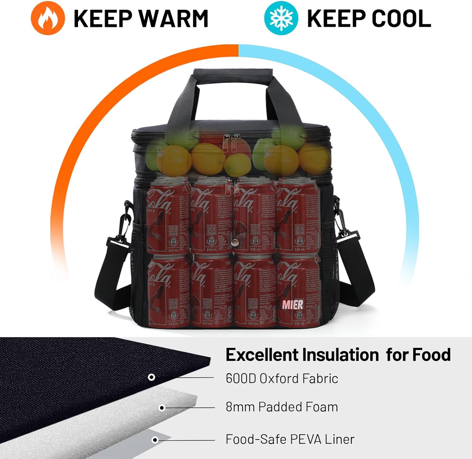 Men's Extra Large Lunch Box with Expandable Compartment --- MIER Big Lunch Bags is designed to cater to those who need ample storage and insulation for their meals on-the-go. This versatile lunchbox offers both standard and expanded capacity options