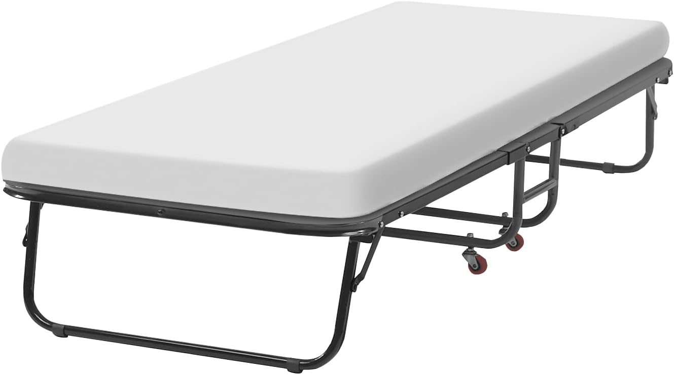 Space Saving Design : Optimize your space with our white folding guest bed cot. This twin size cot bed has a space-saving design that easily rolls away and folds for convenient storage when not in use. Enjoy the freedom to transform your space effortlessly.