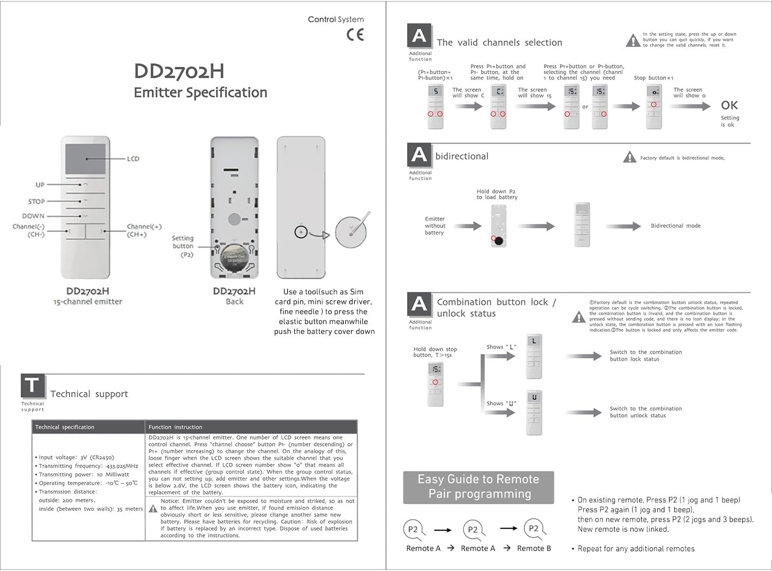 DD2702H 15 channel Bi-directional remote is mainly used for remote controlling the Bi-directional motors (Default factory setting )
