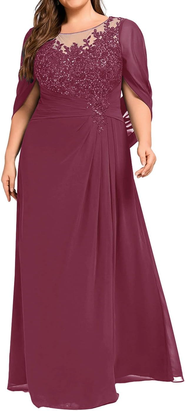 Mother of The Bride Dresses Pleated Sequins Plus Size Wedding Guest Dress Lace Appliques Long Chiffon Evening Party Gowns