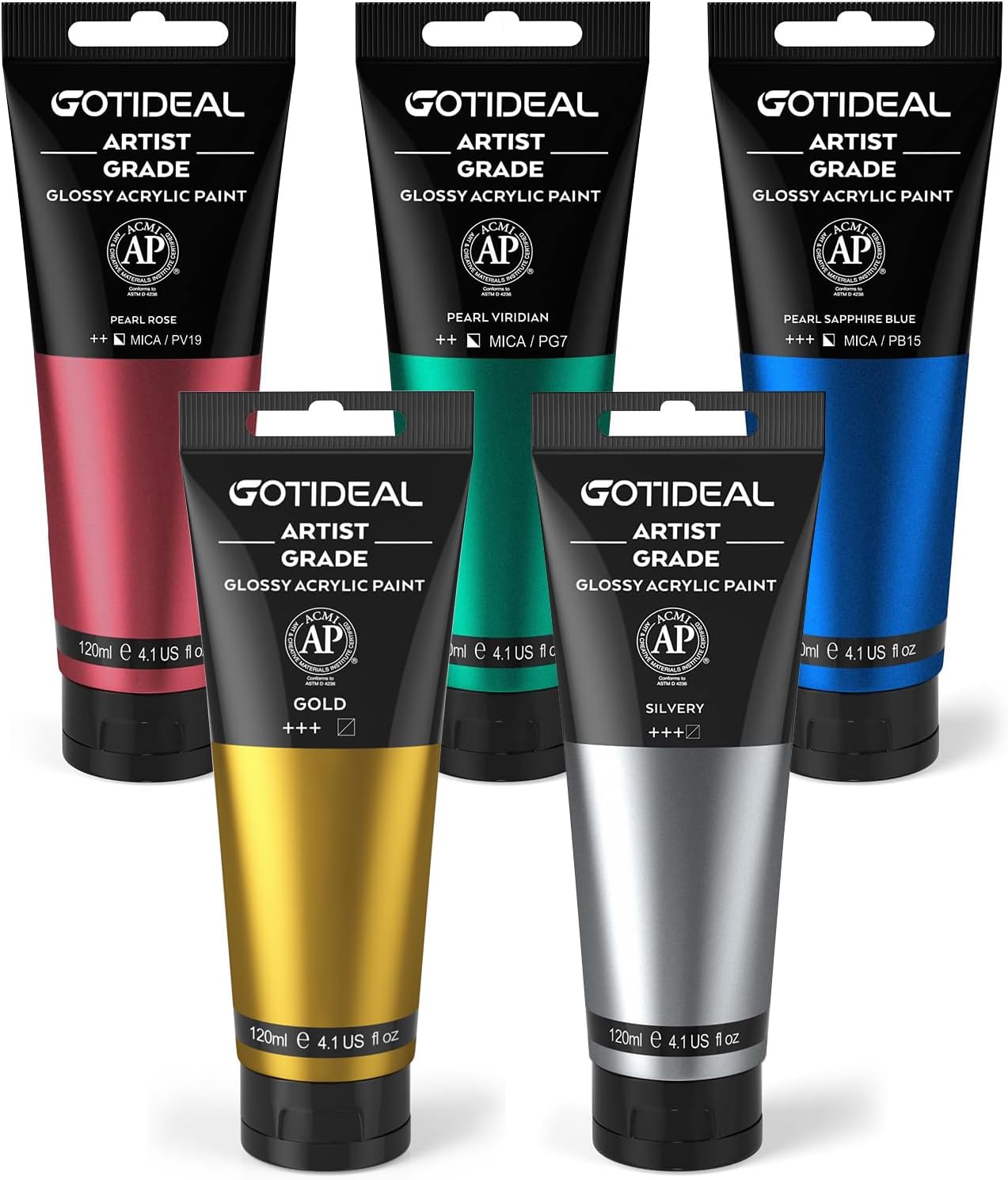 GOTIDEAL Acrylic Metallic Paint Set 5 Colors 120ml