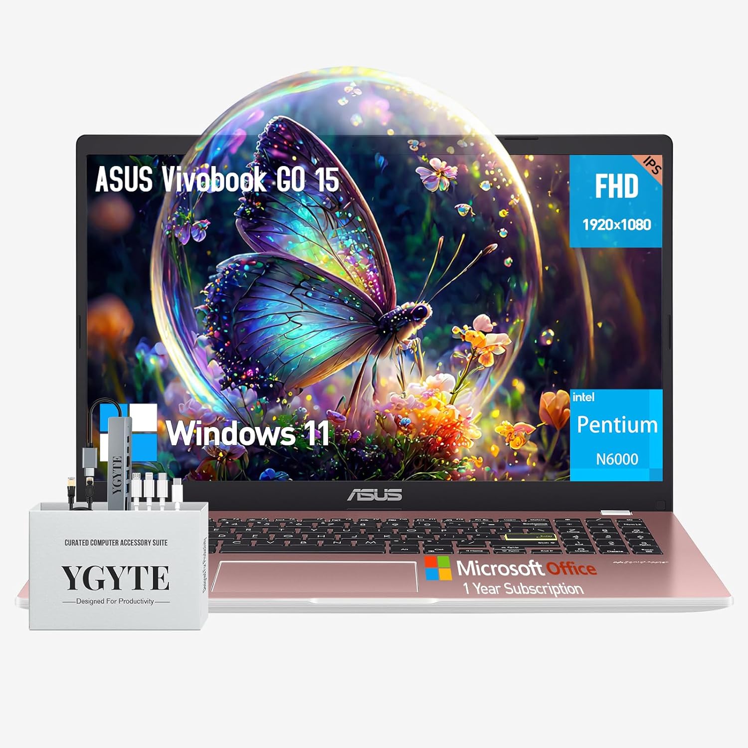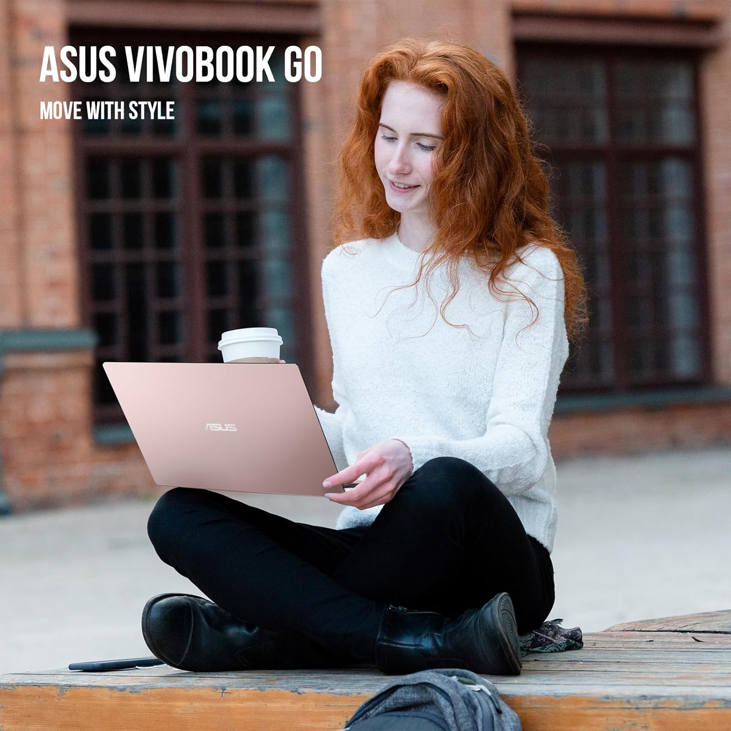 Asus Vivobook Go 15 Pink Laptop Computer, FHD 15.6 Laptop College Students Business, Intel Thin Lightweight Notebook PC, 4GB RAM 128GB eMMC+512GB USB,Windows 11, 1Y Office 365,10-key Number Pad Webcam