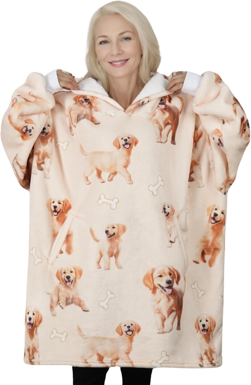 Huglanket Golden Retriever Gifts for Women Men, Blanket Hoodie Gifts for Dog Mom Dog Dad on Birthday, Christmas, One Size