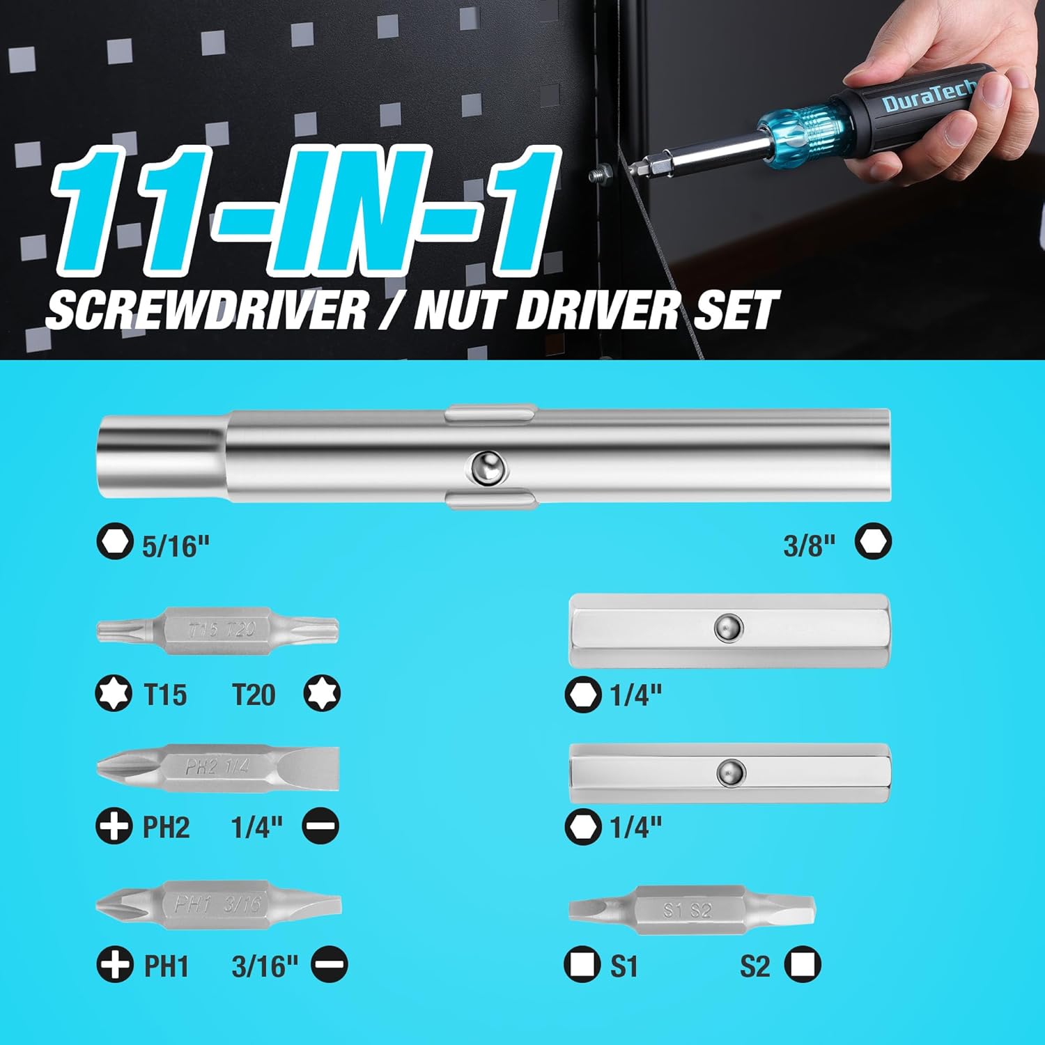 DURATECH Screwdriver, Multi Bit 11-in-1 Screw Driver & Nut Driver Set, Premium S2 Steel Bits, Portable Screw-driver, with Phillips, Slotted, Torx, Square Bits
