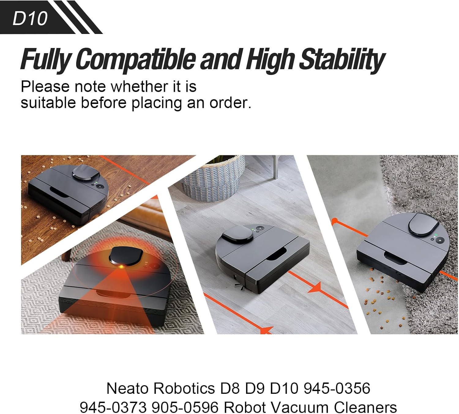 Fully compatible and high stability} Replacement for Neato Robotics D8 D9 D10 945-0356 945-0373 905-0596 Robot Vacuum Cleaners. NOTE: NOT Compatible with Neato Robotics D3 D4 D5 D6 D7 D3+ D301 D303 D5+ D502 D503 D701 D702 D703 D705 Robot Vacuum Cleaners Series