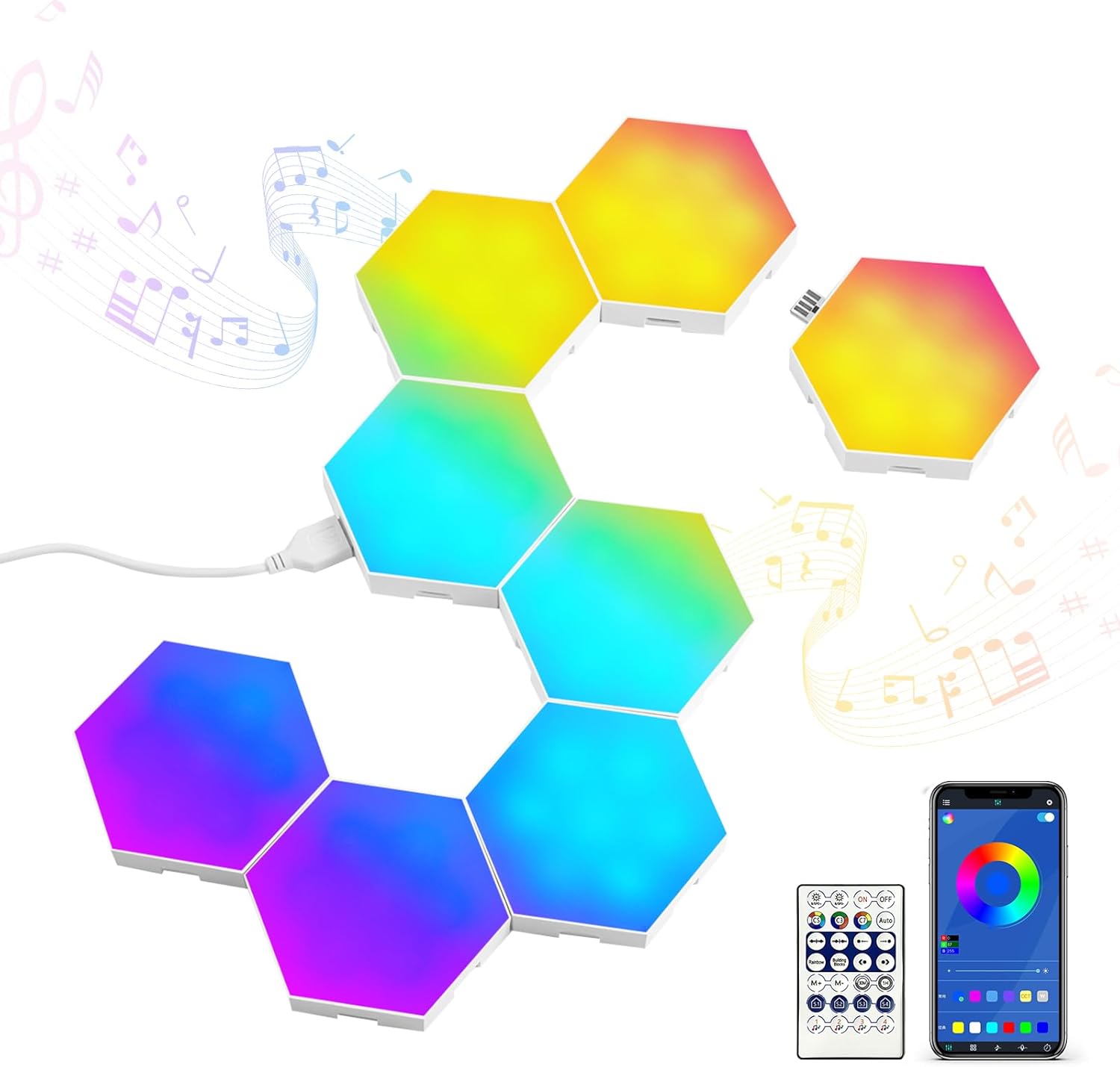 Más información para tu compra de 8 Pack RGB Hexagon Lights W...