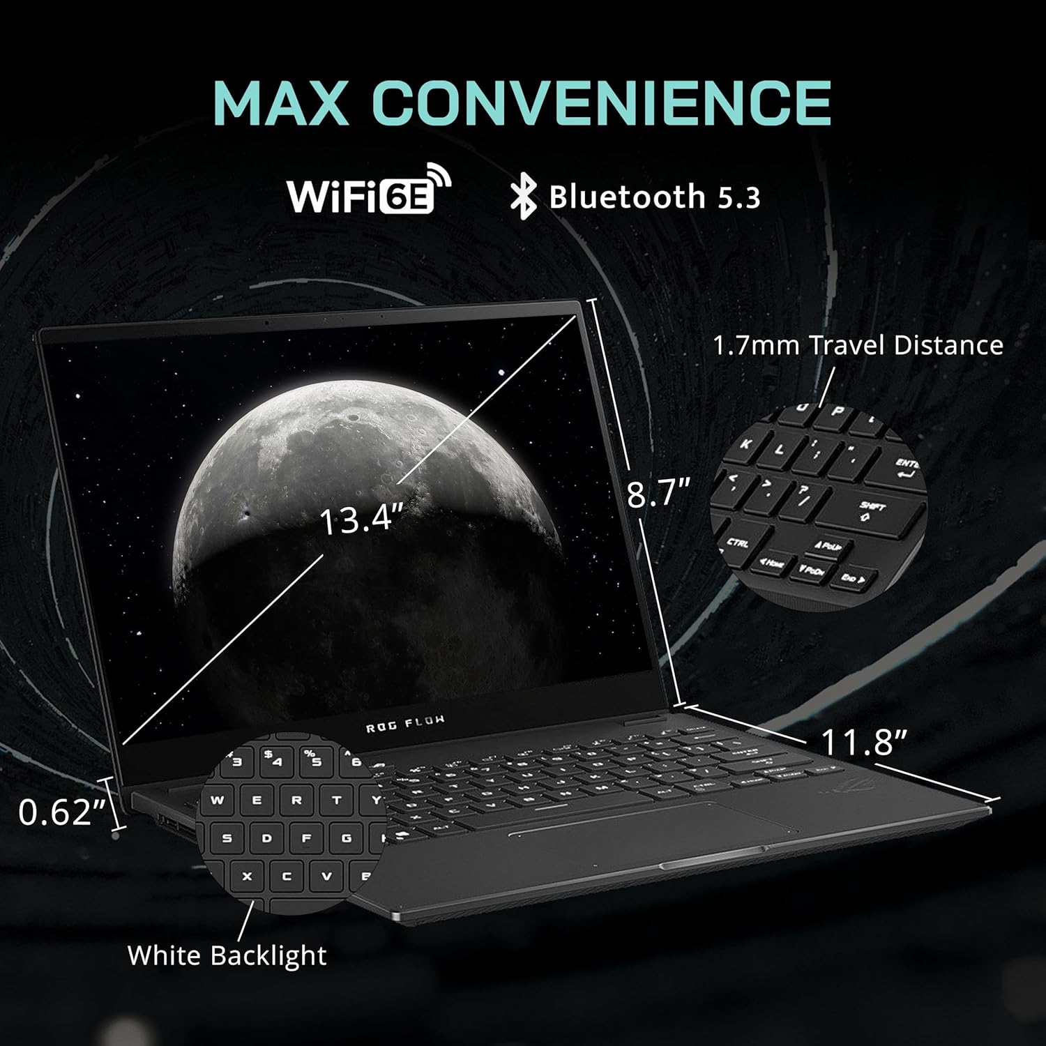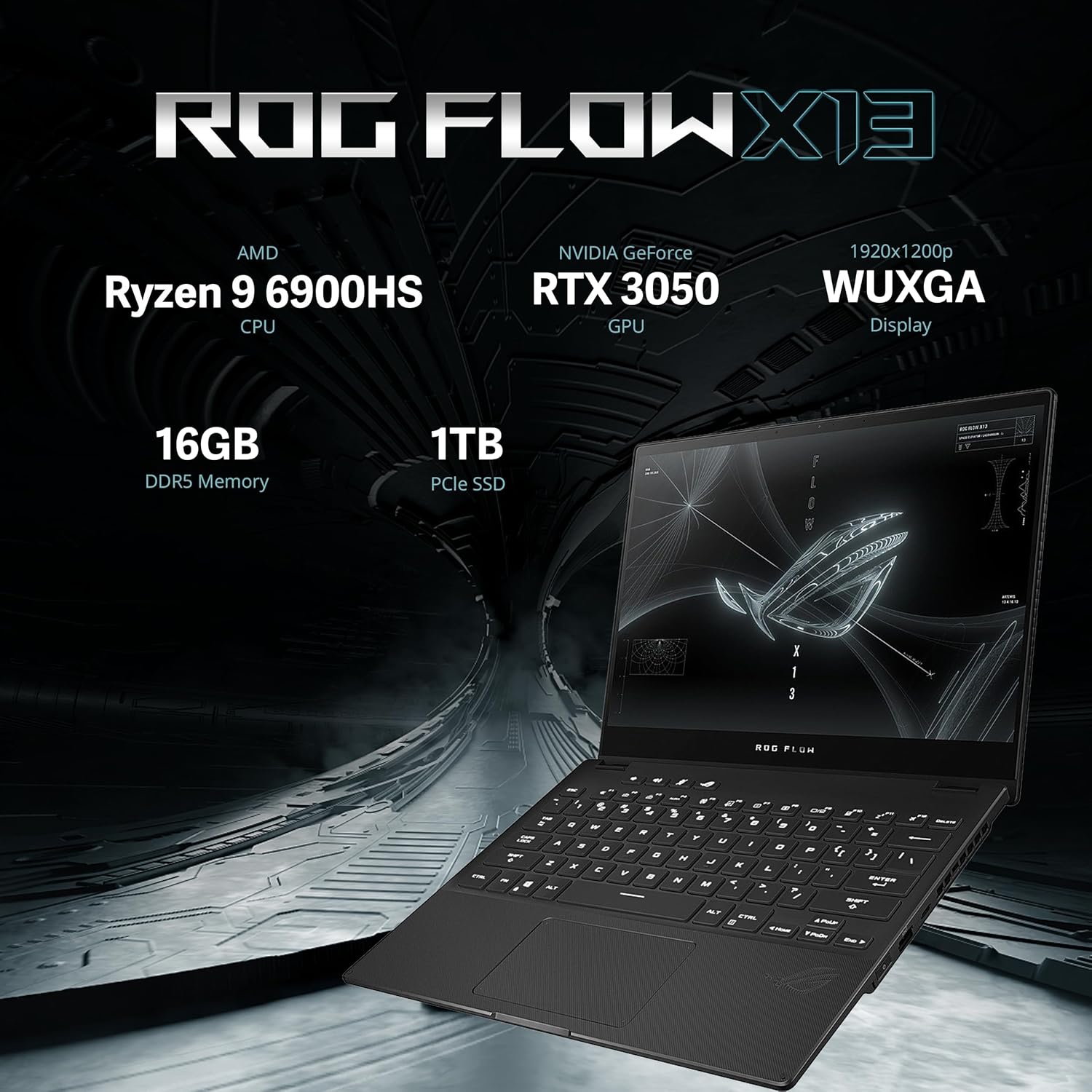 asus ROG Flow Touchscreen Laptop, 13.4'' WUXGA 1920x1200 Display, AMD Ryzen 9 6900HS, 16GB LPDDR5 RAM, 1TB SSD, NVIDIA GeForce RTX 3050, Backlit Keyboard, Win 11 Pro, Black, 32GB USB Card (Renewed)