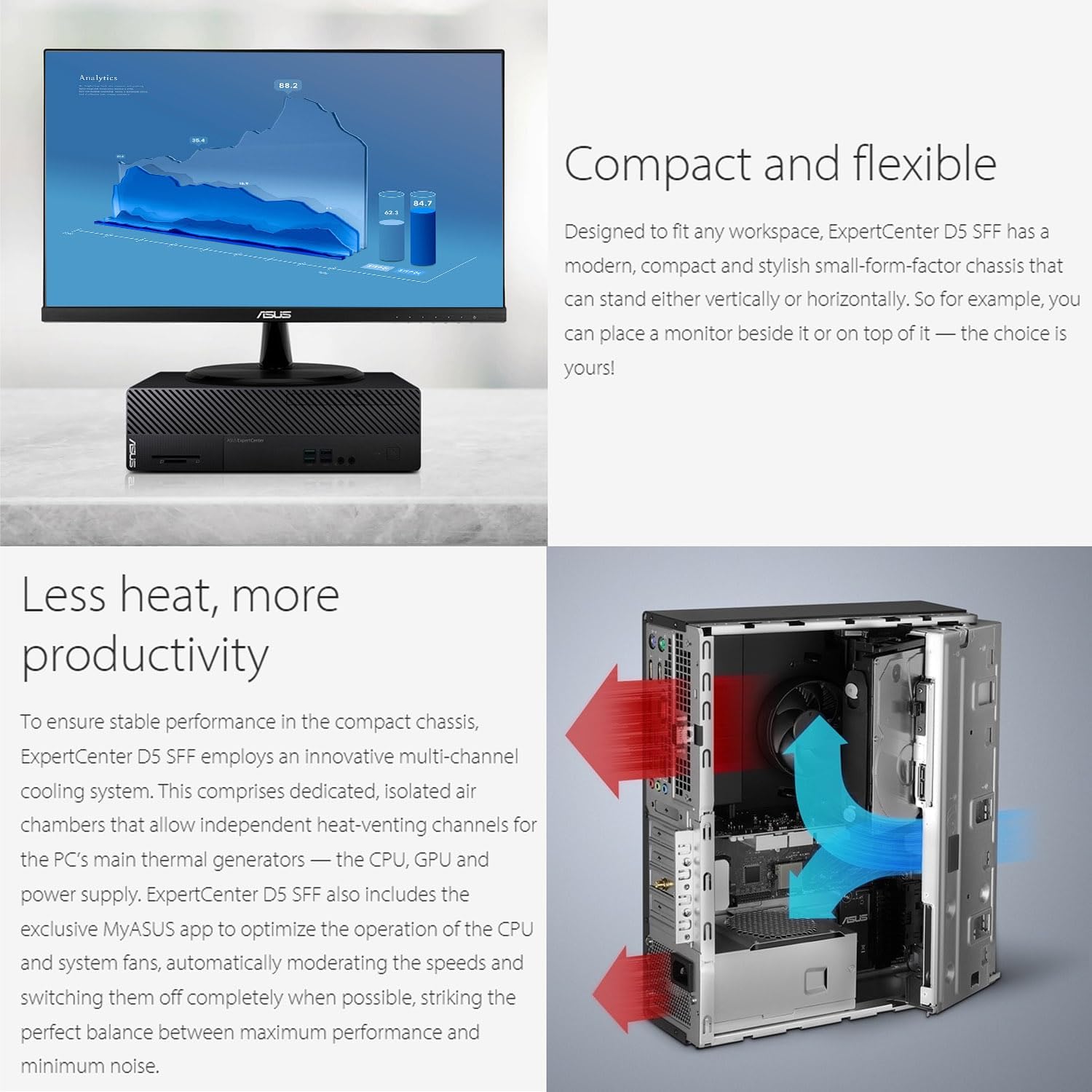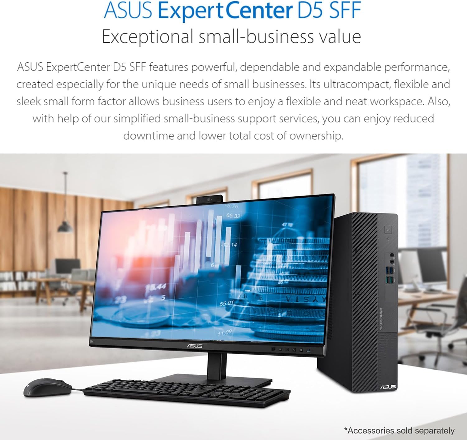 ASUS ExpertCenter D5 Business SFF Desktop, 12th Gen Intel 6 Cores i5-12400 Processor, 16GB RAM, 1TB SSD, DVD, RJ45, HDMI, Wi-Fi, Windows 11 Pro, Black