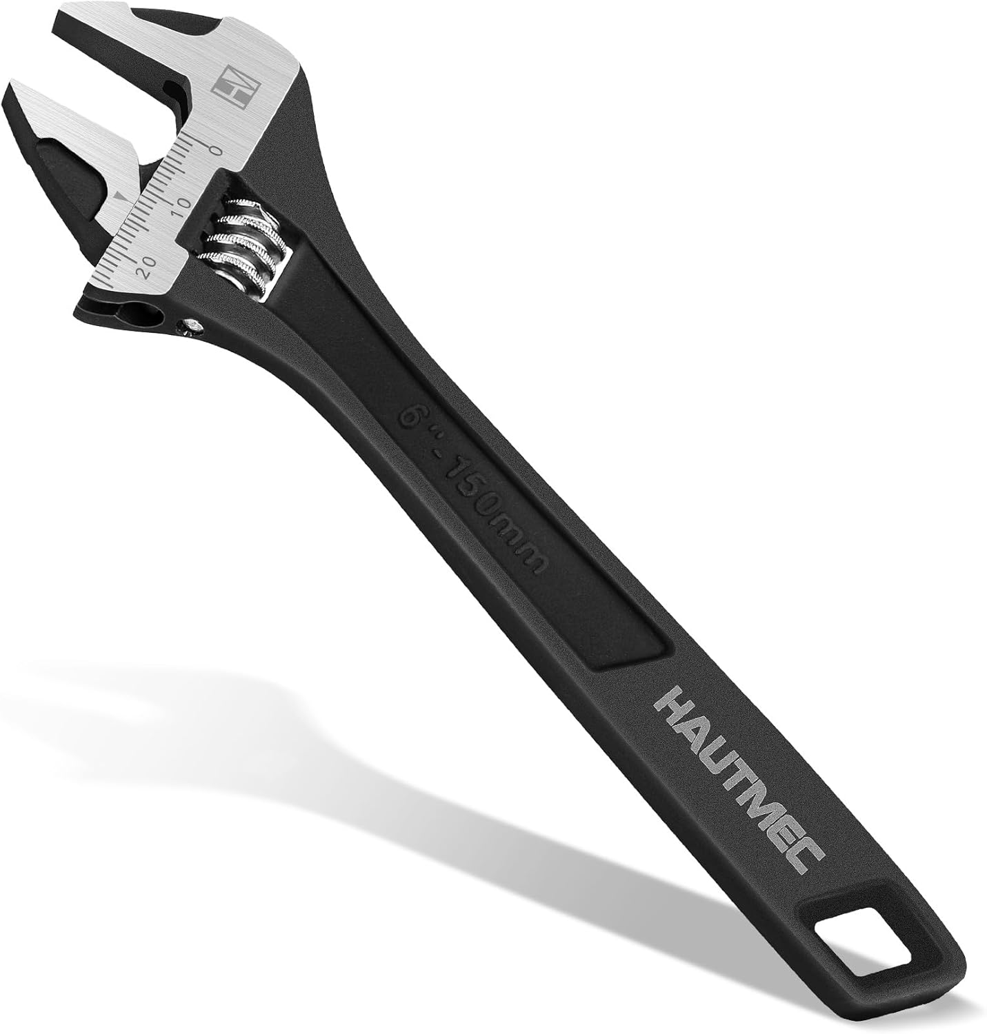 HAUTMEC 6 inch Adjustable Wrench Extra Wide Jaw Black Finish Adjustable Wrenches Drop-Forged CR-V Steel Metric & SAE Scales for Home Garage Workshop DIY
