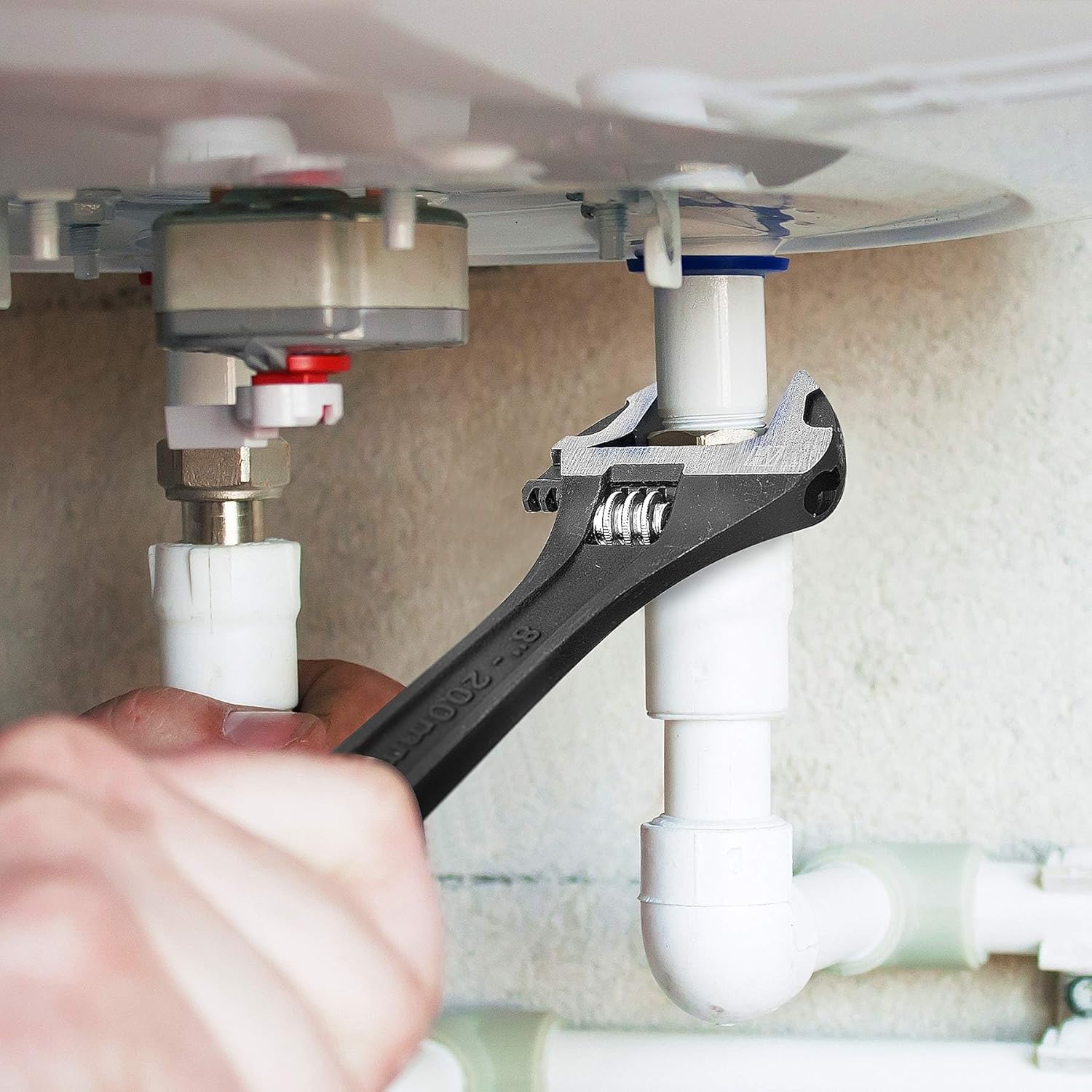 Smooth Jaw Adjustment: Adjustable wrenches features a large knurl for easily smooth adjustment and single-handed operation, besides a hex jaw design to reduce slippage by gripping fasteners tightly. Optimal head width and non-protruding jaws allow accessibility for hard to reach spaces.