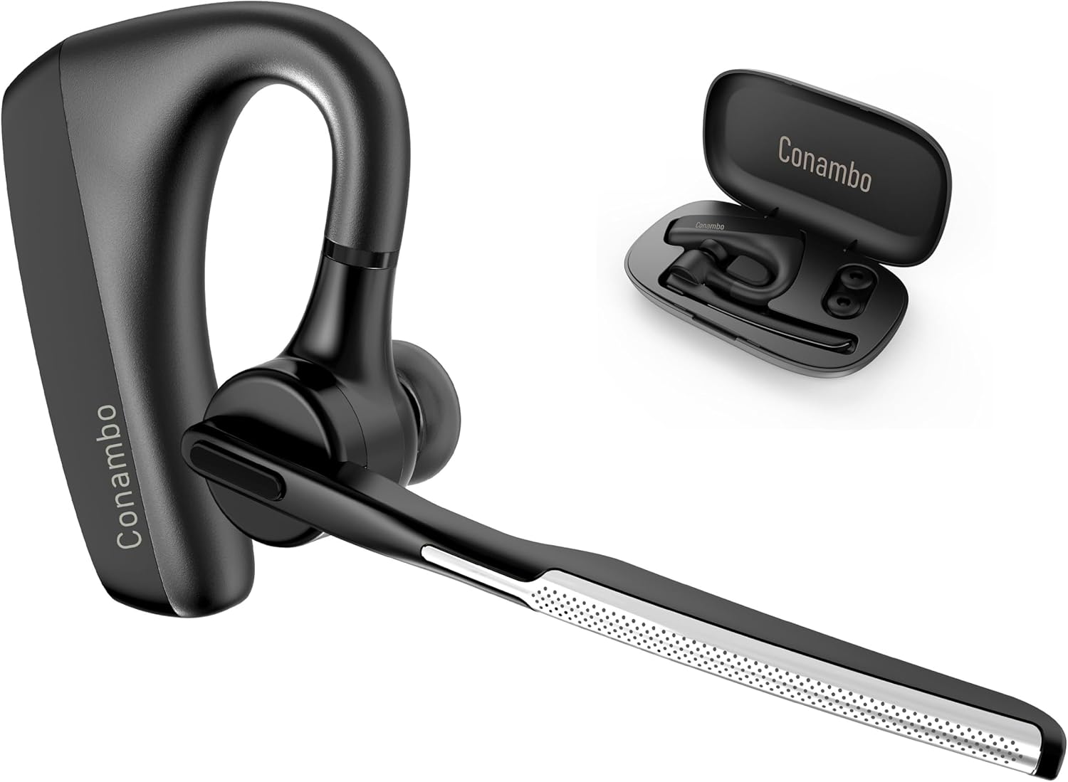Conambo K18 Wireless Headset Bluetooth V5.1, Bluetooth Earpiece 16 Hrs Talking Time Hands-Free Single Ear Bluetooth Headset with Dual Mic Noise Canceling for Work Trucker iPhone Android Cell Phone