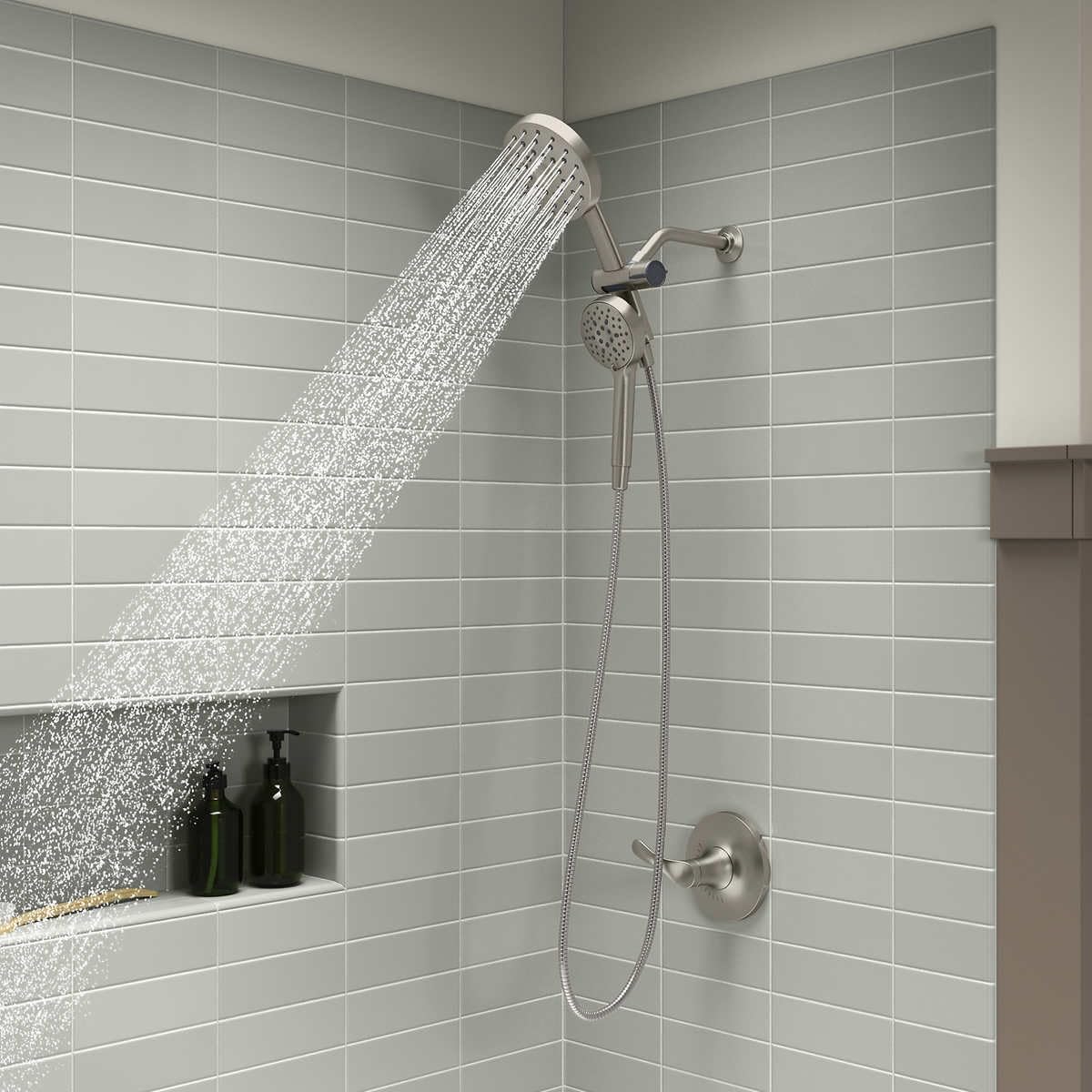 Bring sleek, space-saving style to your shower with Adjuste, an innovative 3-in-1 multifunction 1.75 gpm combo shower kit. It all begins with three unique showering experiences which lavish you with nine unique spray combinations so your shower will never be boring again. Plus, with our DockNetik magnetic docking system your handshower can lock securely in place when not in use.