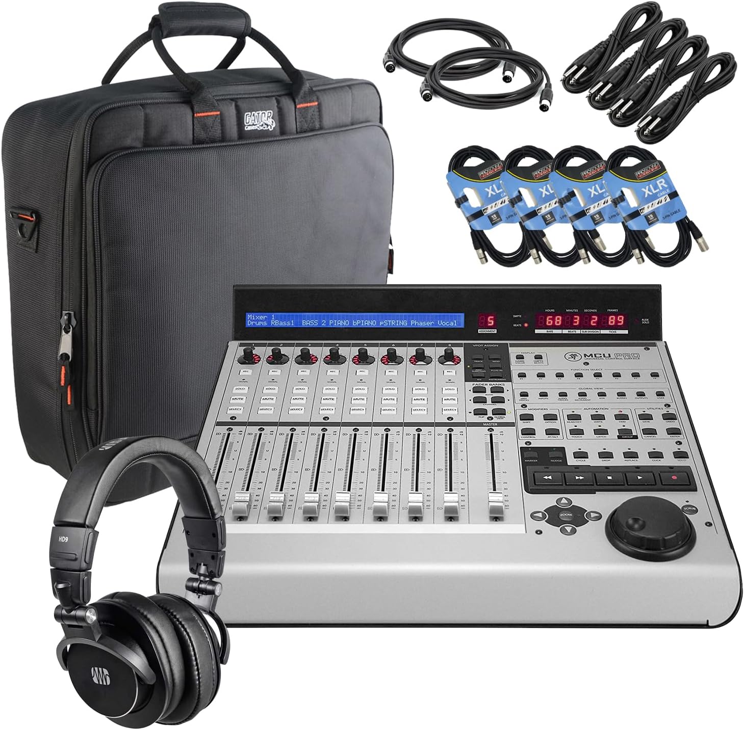 MCU Pro Control Surface, G-MIXERBAG-1818 Bag, Presonus HD9, (4) XLR Cables, (2) Midi Cables, (4) 1/4 Cables Bundle