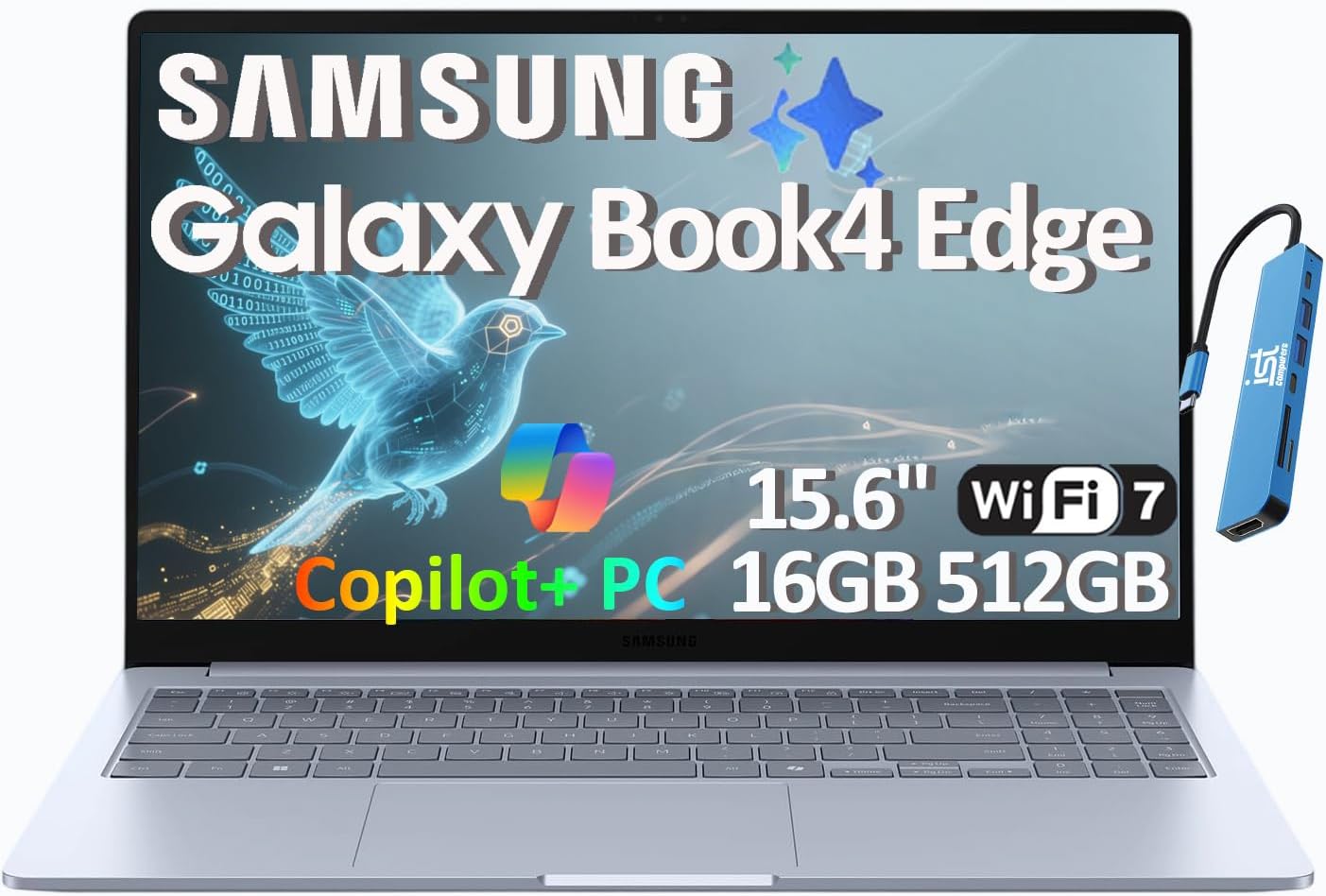 Samsung Galaxy Book4 AI Business Laptop (15.6" FHD Anti-Glare, Snapdragon X (> i7-1255U), 16GB DDR5, 512GB Storage) Copilot+ PC, Fingerprint, Wi-Fi 7, 28-hr Long Battery, Win 11 Pro, NP750XQB