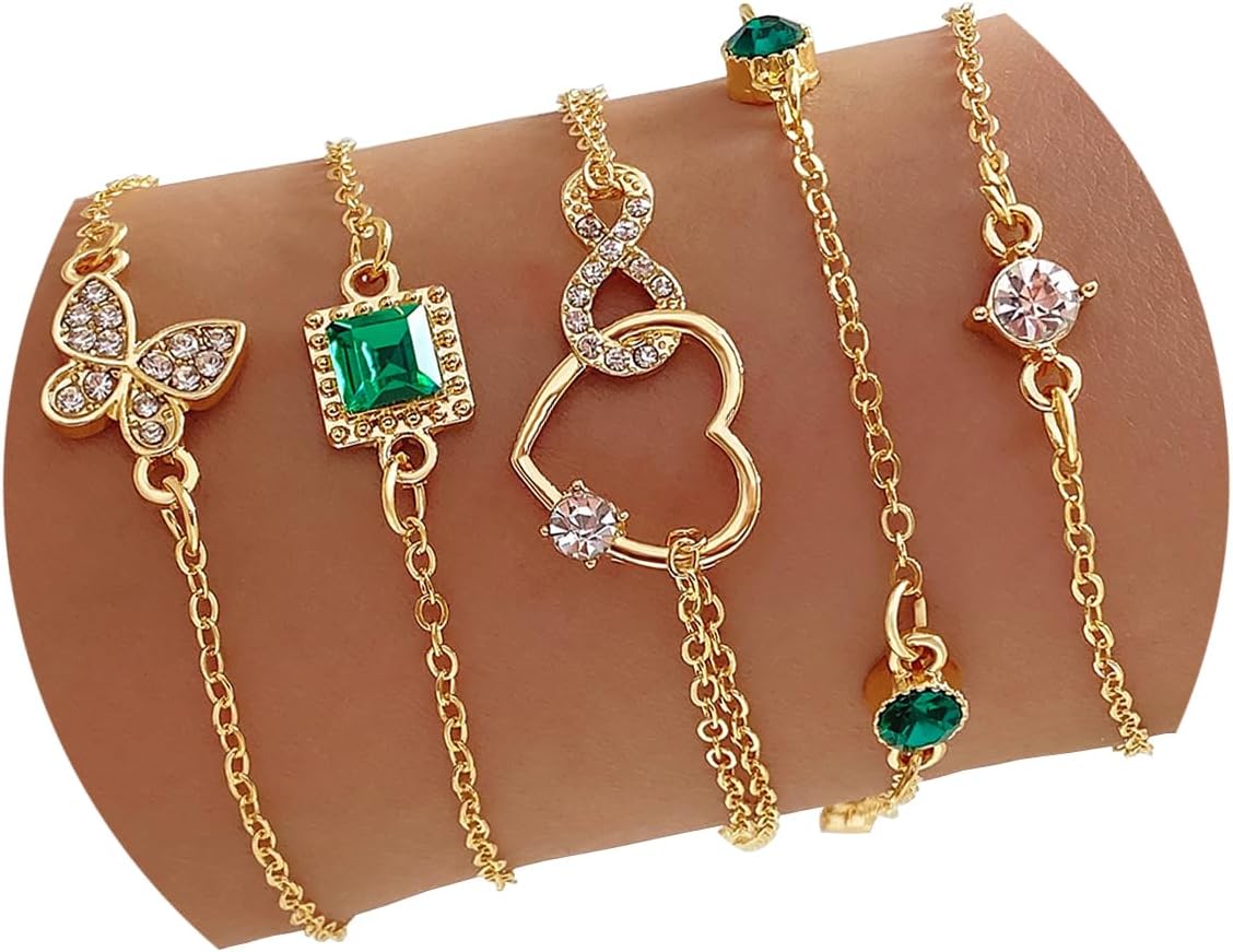 IFKM Gold Bracelets for Women, 14K Gold Plated Dainty Layered Chain Bracelets Adjustable Cute Bangle Link Bracelet Set