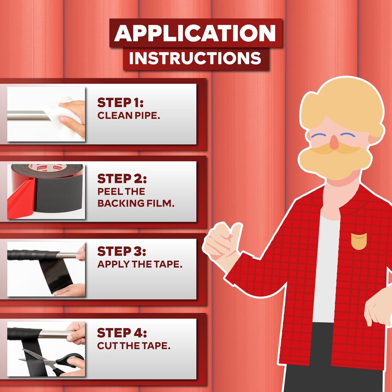 EASY-TO-APPLY. Pipe insulation foam tubes can be inconvenient. Simply wrap our metal pipe insulation tape, and you’re done. Our pipe foam insulation tape is made of EVA foam, allowing for quick AC line insulation installations.