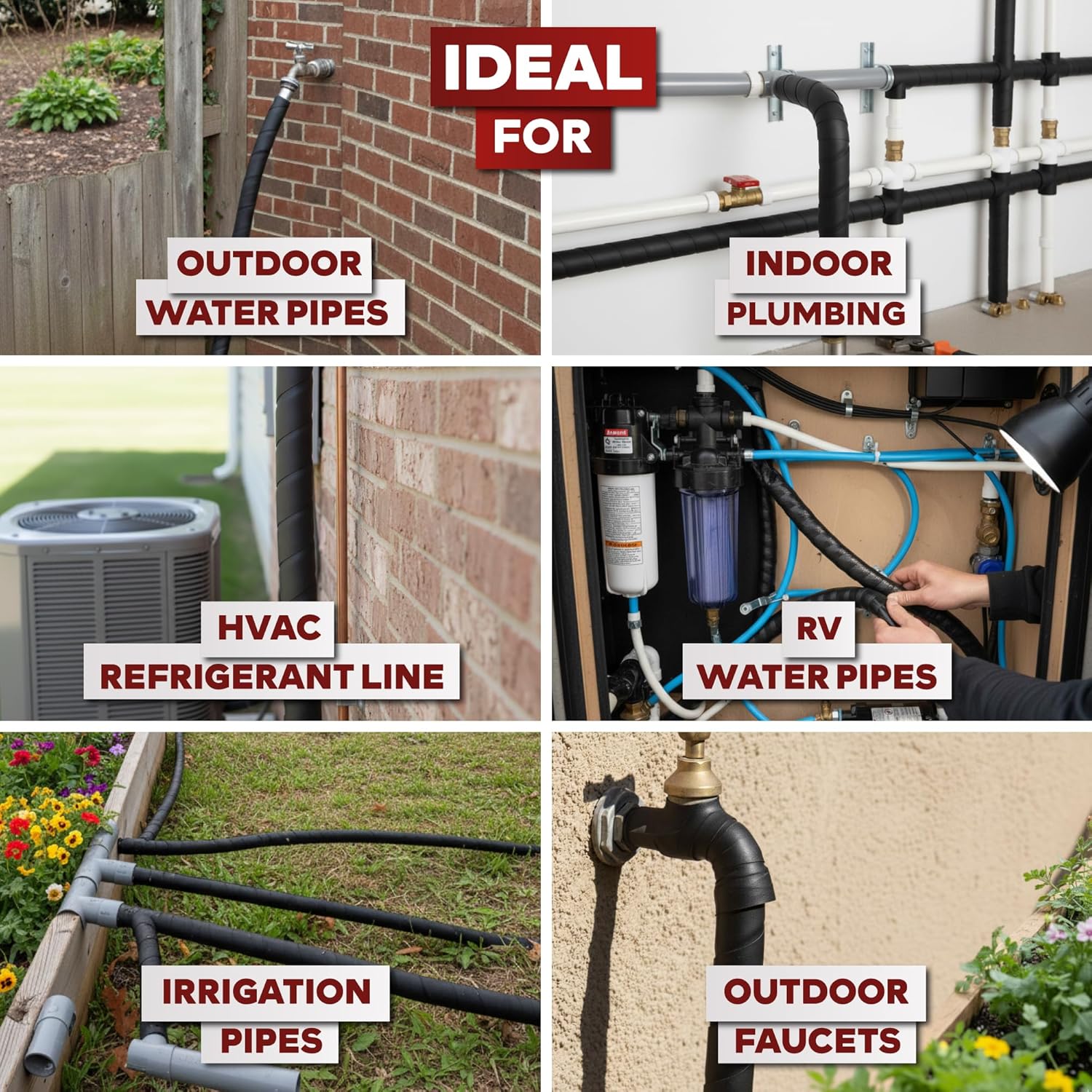 OPTMIZED THICKNESS. Stretching up to 6x without breaking, our AC insulation tape is the best water pipe insulation tape, withstanding extreme bending for hard-to-reach a/c line insulation wrap outside.