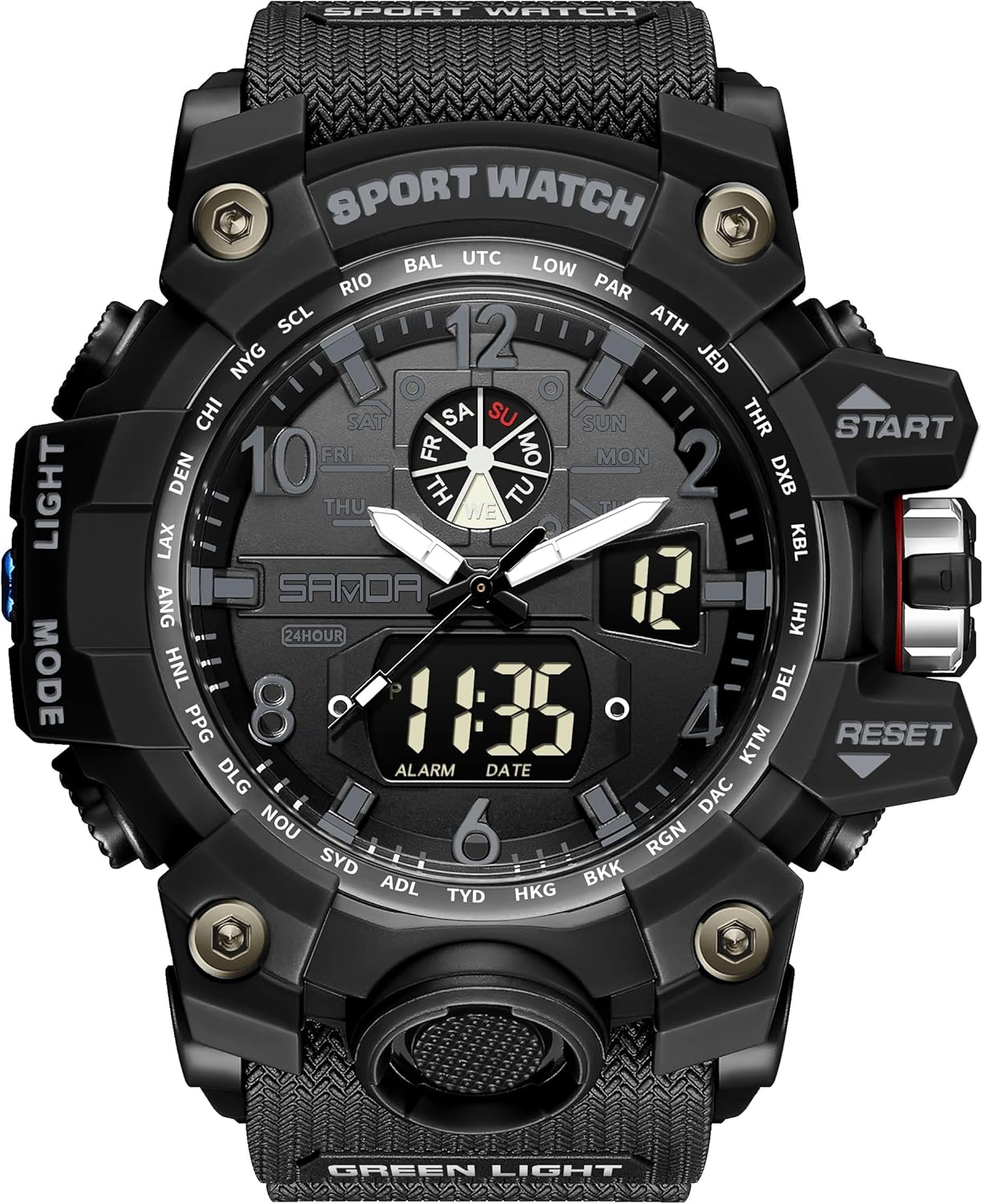 Mens Watches Sports Outdoor Waterproof Military Wrist Watch Date Multi Function Tactics Analog Digital LED Alarm Stopwatch