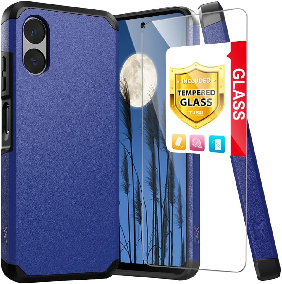 TJS Compatible for Motorola Moto G Play 4G (2024) Case, with Tempered Glass Screen Protector, Dual Layer Hybrid Magnetic Support Shockproof Heavy Duty Cover Phone Case (Blue)