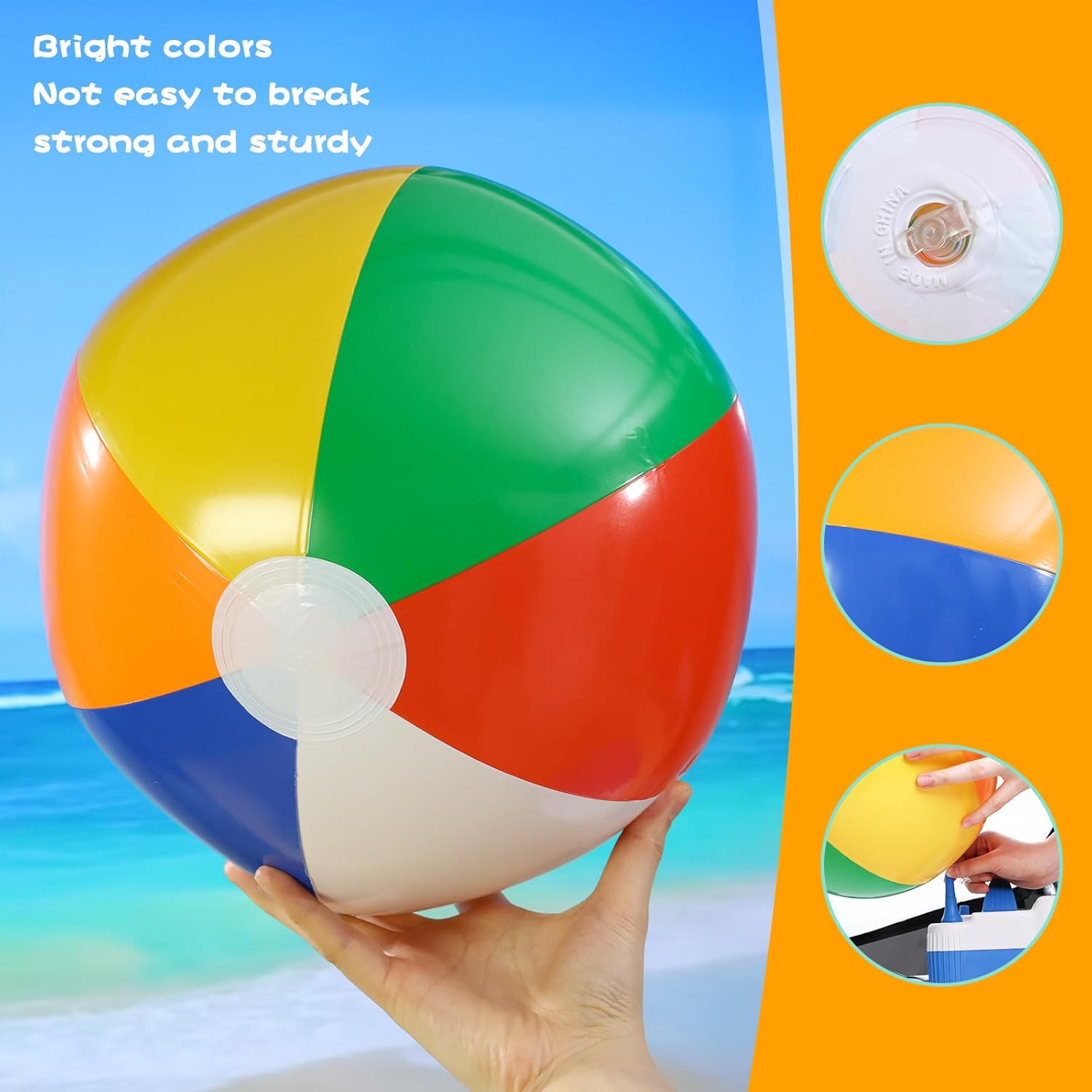 What's Included - You'll receive a set of 12 inflatable beach balls, boasting outstanding quality and vibrant colors.