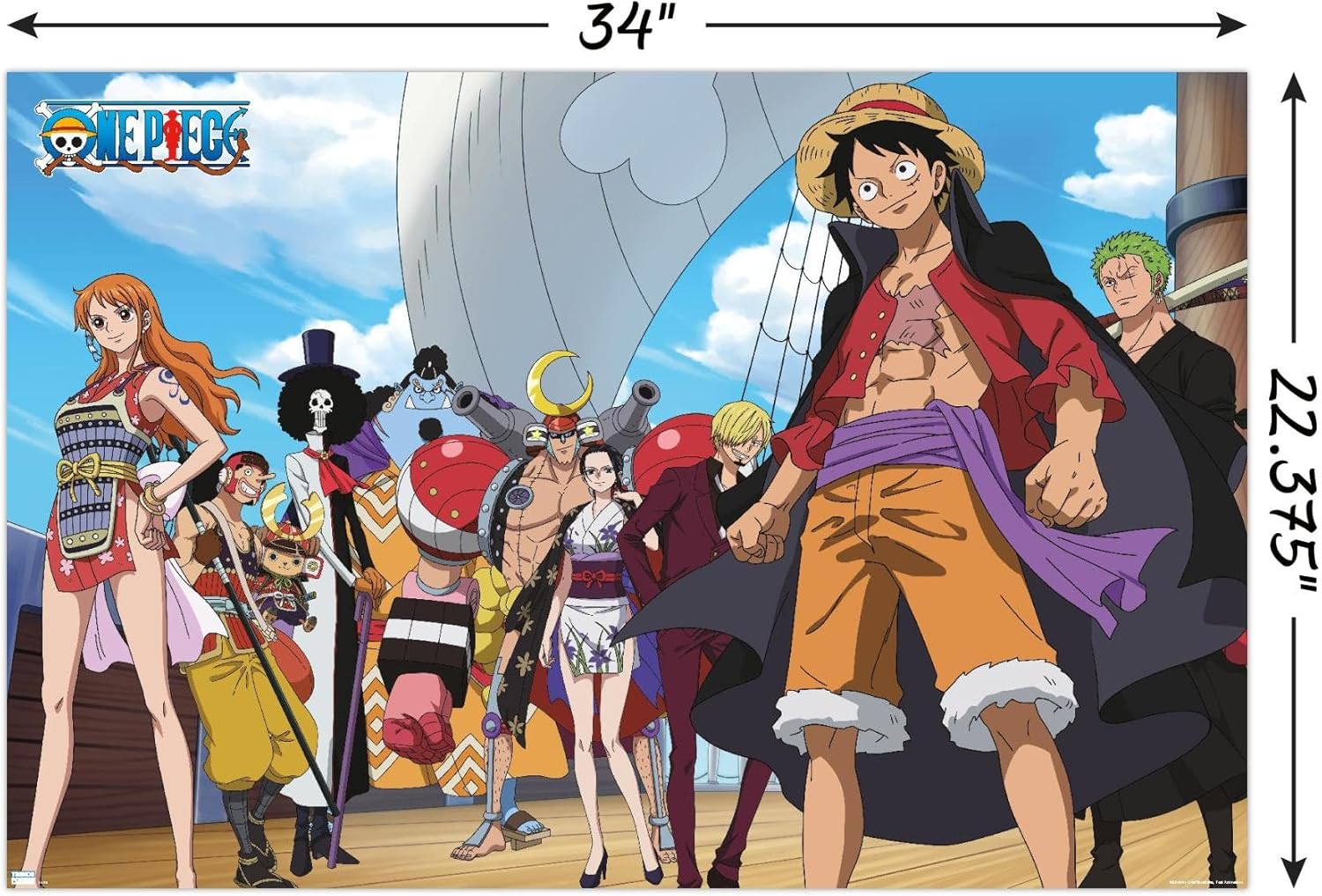 Trends International wall posters are everyone's favorite room decor! This One Piece: Wano Country - Sailing Crew Wall Poster is created with high-resolution artwork and is printed on glossy poster paper which enhances the colors to make a bold wall decor statement in any room. Decorate the bedroom, bathroom, kid's room, living room, office, dorm, and more! Our art prints are lightweight and easy to hang using the included adhesive poster mounts that won't leave holes in your poster or damage your wall like nails, thumb tacks, or push pins. Every one of our premium posters are proudly Made in the USA. Add these decorations alongside the other accessories on your party supplies list too! Trends International's wall posters are the perfect way to dress up your parties. Poster bundles make great gifts as well! Whether it's for a birthday, Christmas, house warming or for your best friend, they'll love receiving a poster and mount bundle to show off their style.