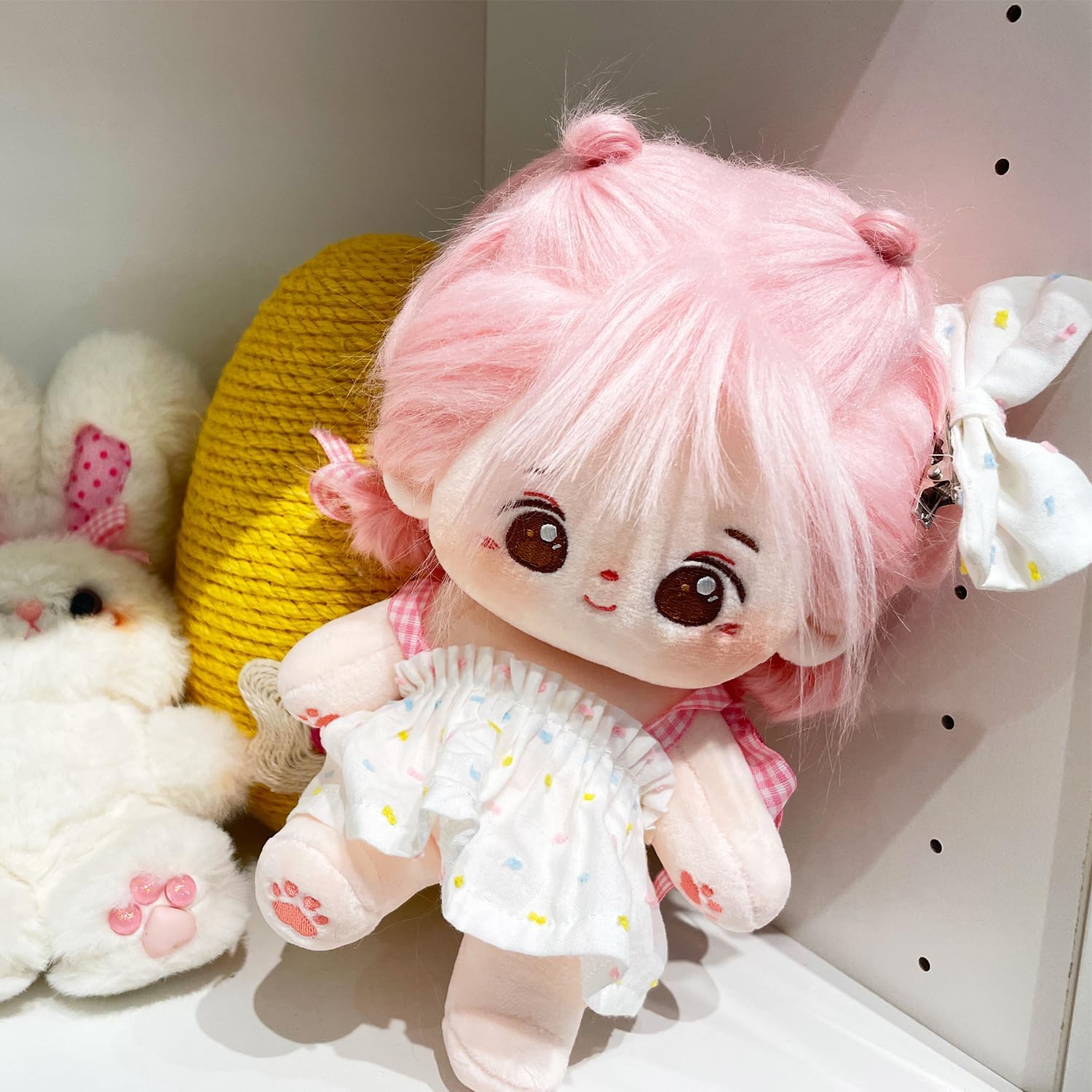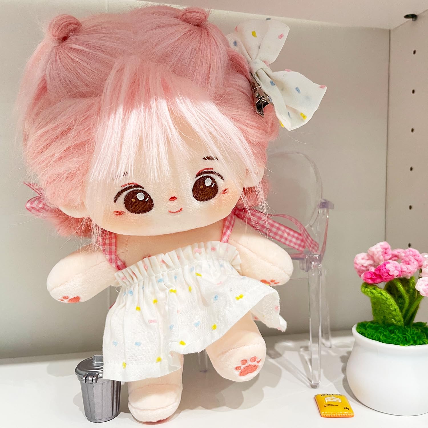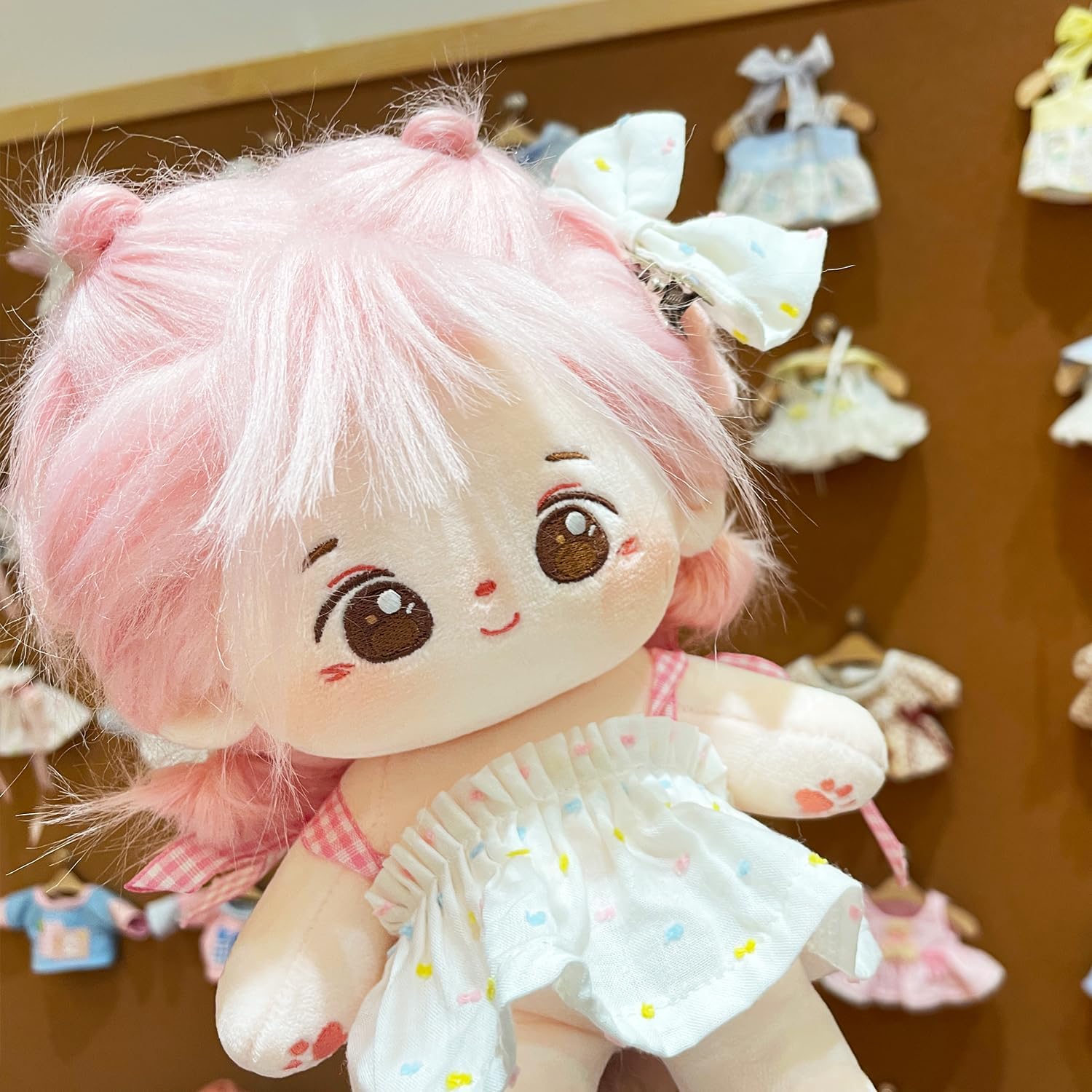 Endless Wardrobe Choices: Dress-up enthusiasts, rejoice! Our plush doll's versatile size effortlessly fits a wide array of 20cm cotton doll outfits, opening the door to a treasure trove of fashion options.