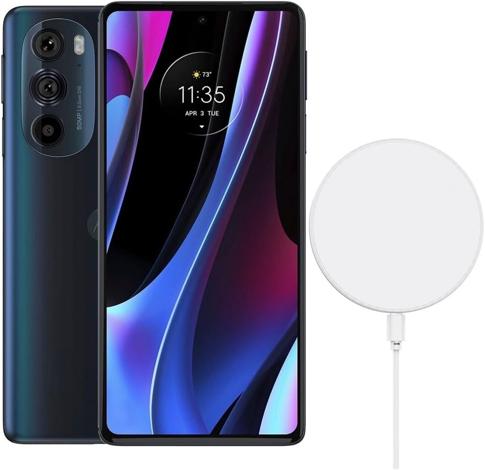 Motorola Edge+ Plus 2022 5G UW (512GB, 8GB) 6.7" OLED 144Hz, 50MP 8K Camera, Snapdragon 8 4nm (US Model Fully Unlocked for All Global GSM & Verizon) XT2201-3(30W Cube & Wireless Charger Bundle, Blue)