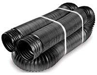 Flex Drain Solid 25 ft. Flexible, expandable, solid landscaping drain pipe, appropriate for applications that involve moving water from one point to another, i.e., away from downspouts. Will not allow water to seep in or out anywhere except at the pipe ends. Works effortlessly with our complete system of connectors, couplers, and adapters. Exceeds all applicable ASTM standards. Manufactured from no-break copolymers for professional-grade strength and integral features. Flex Drain Solid 25 ft. Specifications: Dimension: 0.97 x 0.97 x 0.97 in. Cube 0.92 in. Length: 25 ft. Size 4 in. Weight: 4.7 lbs