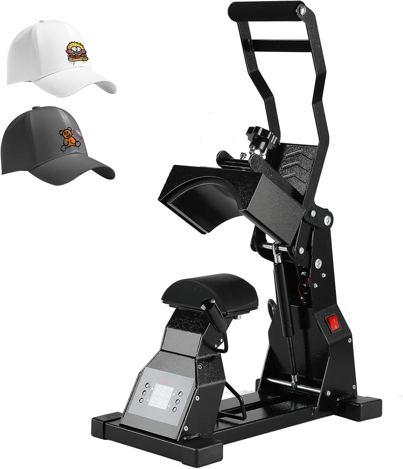 Hat Heat Press Machine for Caps with 2pcs Interchangeable Platens -Black