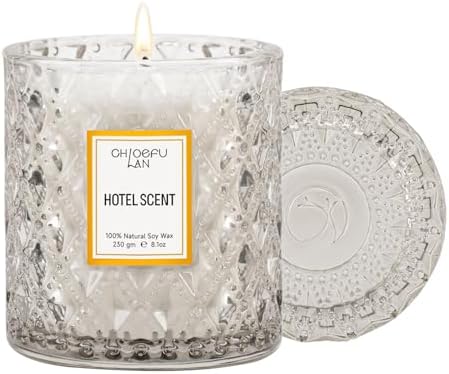 Chloefu LAN Hotel Scented Candle Natural Essential Oil, Luxury Scented Soy Jar Candle Gifts, Highly Scented, 8.1oz, Unique Blend to Promote Sleep & Relieve Stress