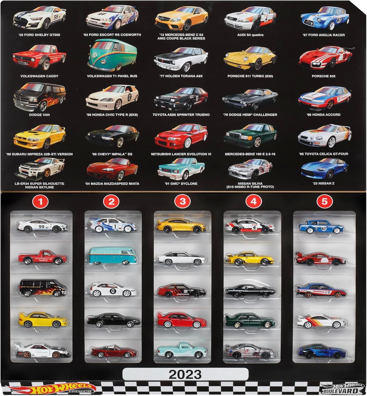 Hot Wheels Boulevard 25-Car Factory Set, 25 Premium 1:64 Scale Sports Cars, 2023 Edition