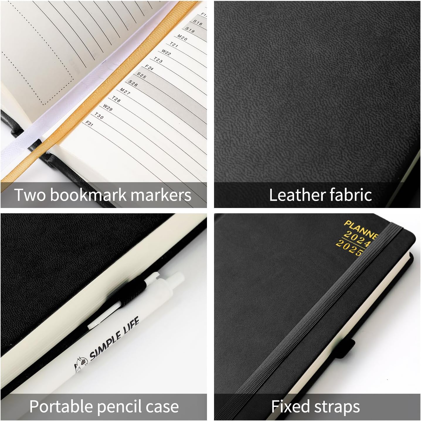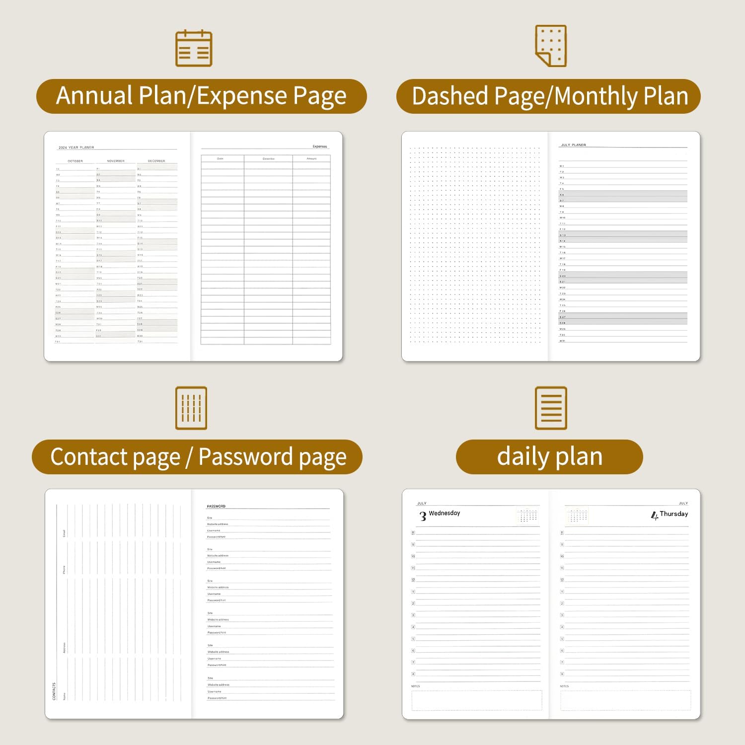 Excellent Material - The shell of this 2024 Daily Planner is made of thick cardboard and leather, which is not easily damaged. The thick paper uses high-quality 80GSM acid free ivory paper, making it smooth and ink resistant to write, bringing you the ultimate writing experience