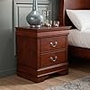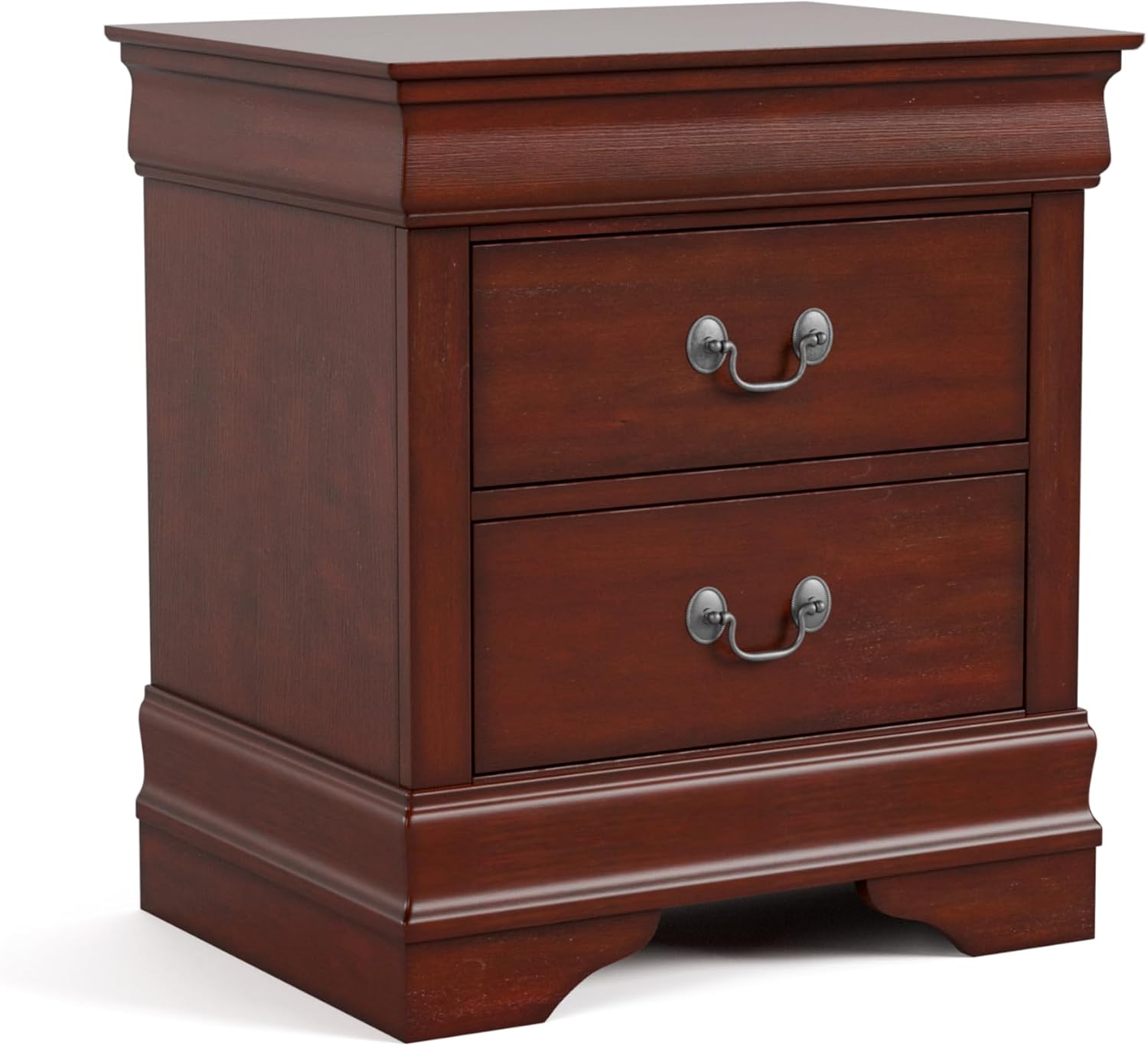 Furniture of America Arabella Traditional Solid Wood Nightstand with Drawers and Antique Nickle Handles, Small Bedside Table, No Assembly Wooden Night Stand for Bedroom, Guest Room, Dorm, Cherry