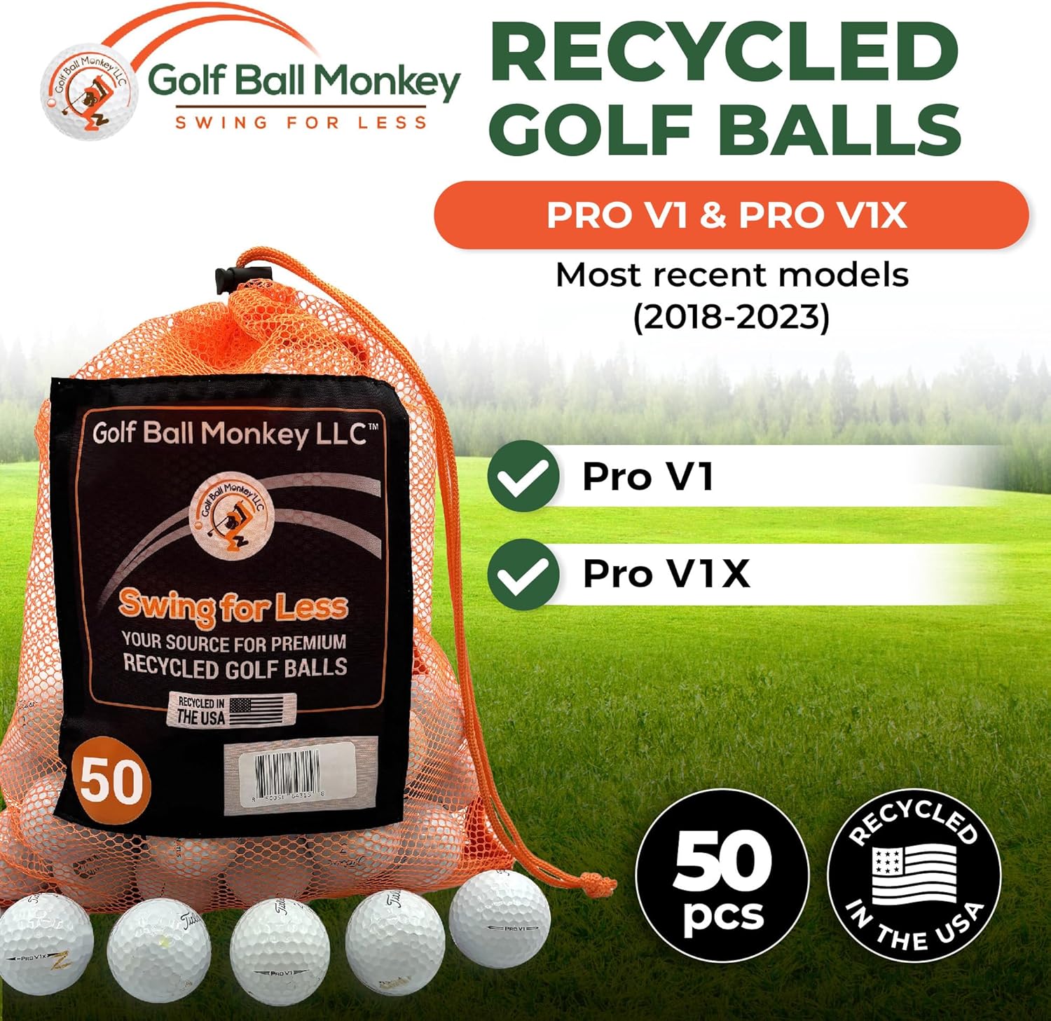Golf Ball Monkey Cheap Recycled Golf Balls for Titleist Pro V1 and Pro V1X Golf Balls Mix w/Mesh Bag - Used Golf Balls for Titleist ProV1 and ProV1X Balls