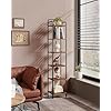 [Industrial Fashion Design]: The stylish bookshelf combines a curved top and a metal frame. A refreshed design showcases your high-end and unique taste; The curved corners prevent your product from falling off easily, ensuring your and your family's safety. The modern style design of the shelves seamlessly blends with your bedroom, office, and entrance.