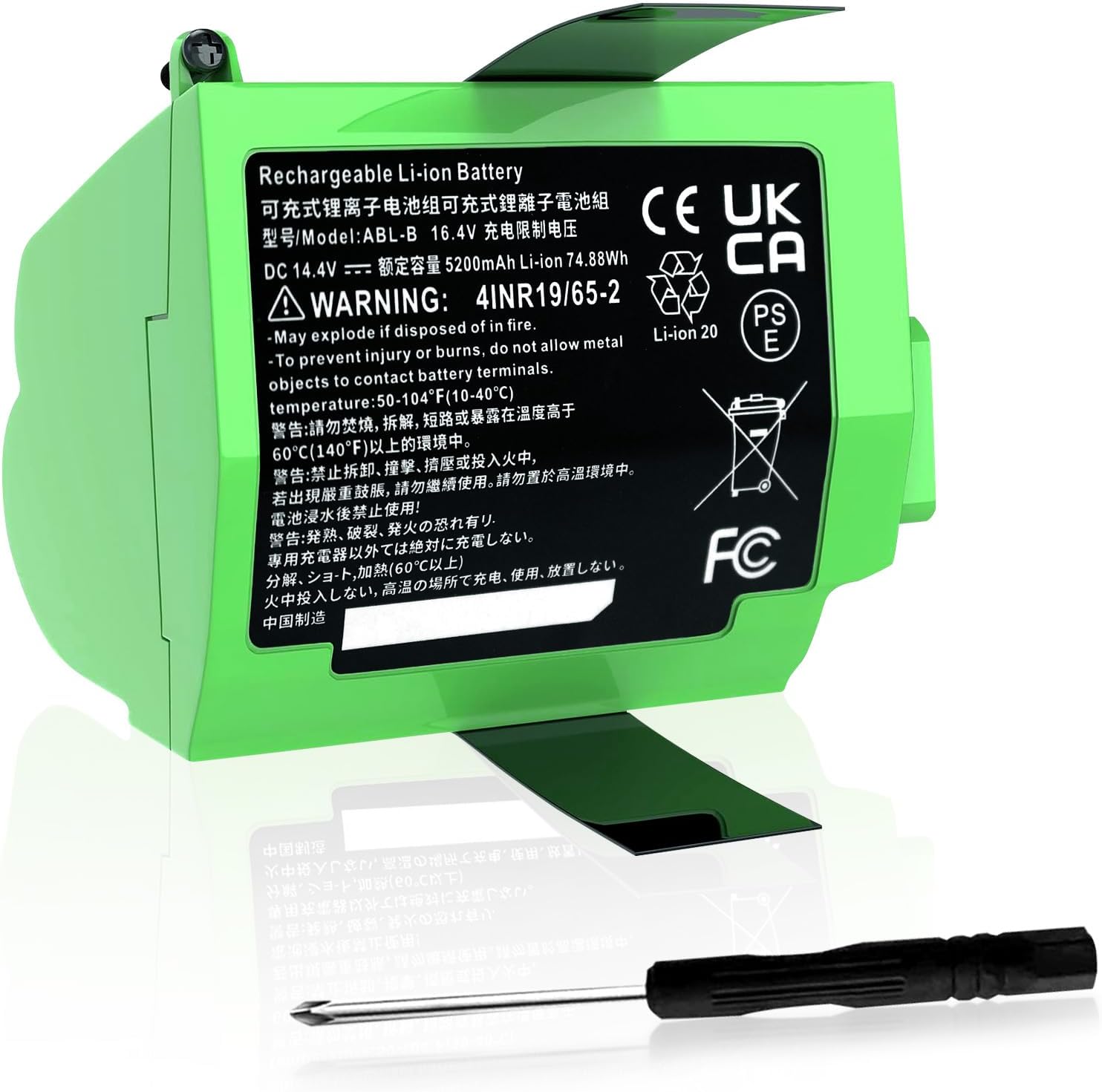 [Specifications] Model: ABL-B / Type: Li-ion / Voltage: 14.4V / Capacity: 74.88WH 5200mAh