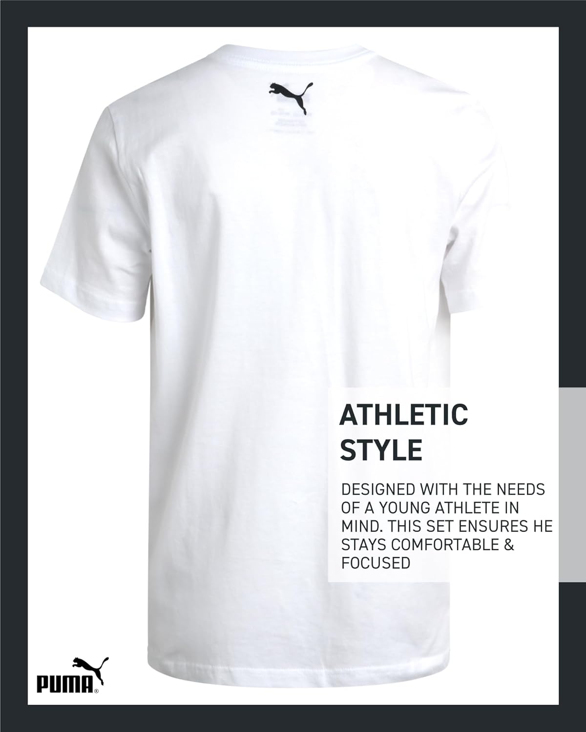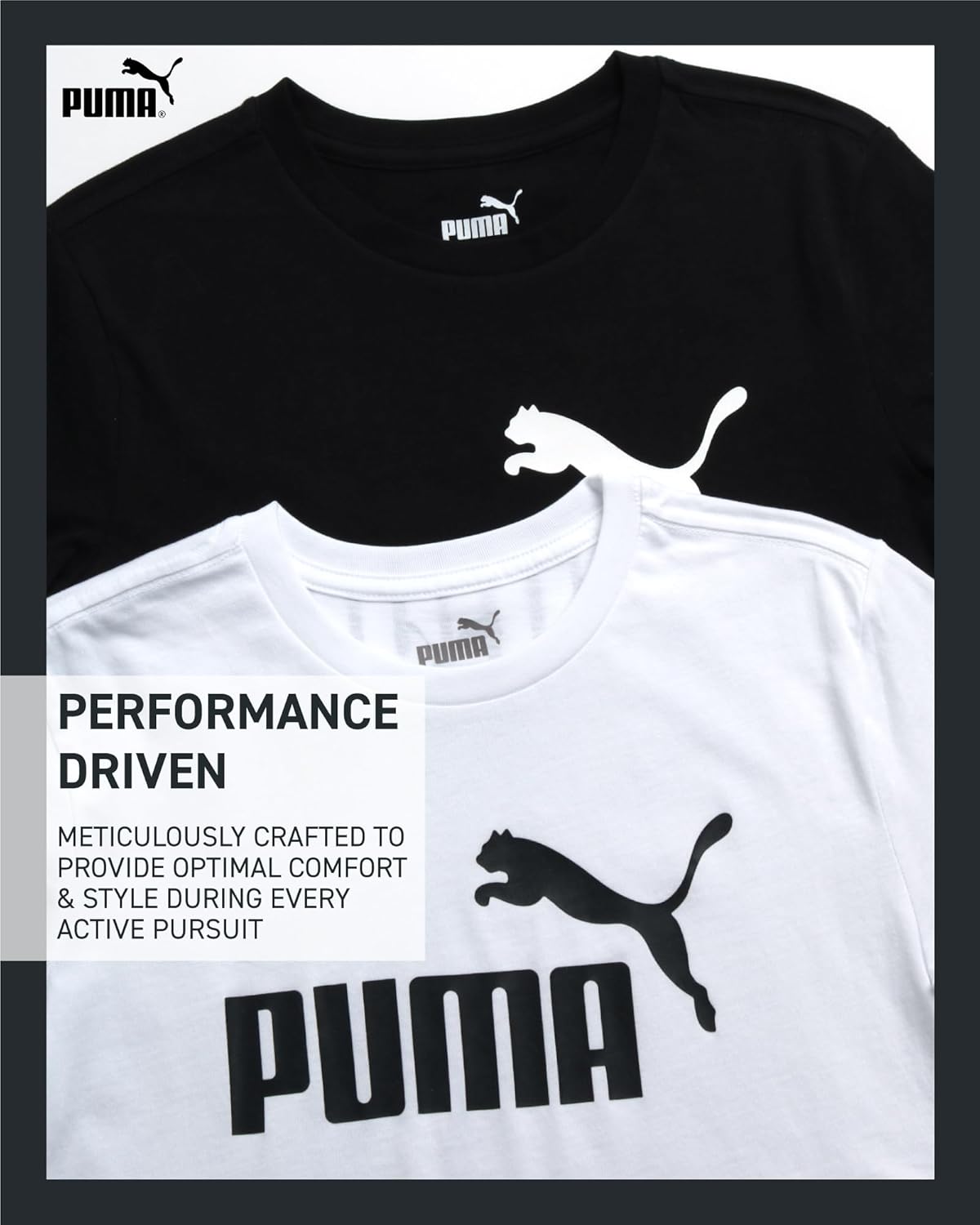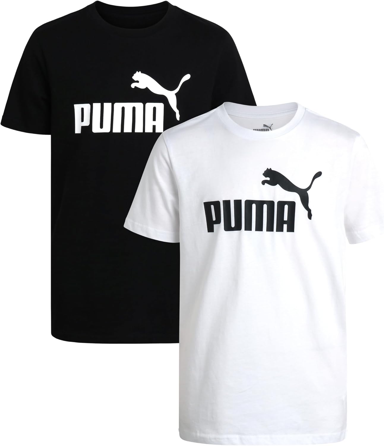 PUMA Boys T-Shirt - 2 Pack Casual Crewneck Short Sleeve Running and Gym Graphic Tee Shirts for Boys with Logo Print (S-XL)