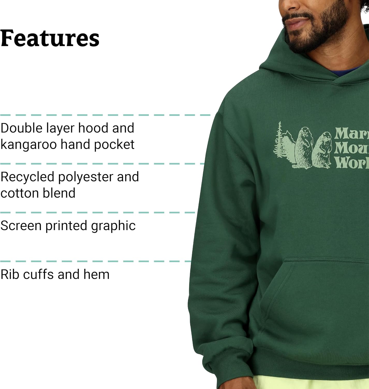 MARMOT Men's MMW Hoody - Hooded Sweatshirt with Screen Printed Graphic, Double-Layer Hood and Kangaroo Pocket
