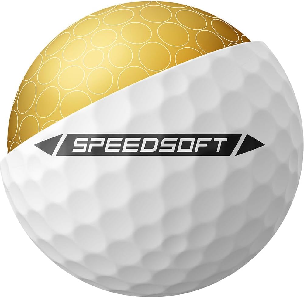 TaylorMade SpeedSoft Golf BallsOUR SOFTEST BALLNEW PWRCORE with a larger, lower compression core, the SpeedSoft Ball gives you a longer contact time on the clubface, limiting spin and resulting in more overall distance.Features:New PWRCORE - Faster core materials developed for additional distanceSoft Sub 50 Compression - Larger core for easy compression and soft feel322 Extended Flight Dimple Pattern - Low drag aerodynamic dimple design