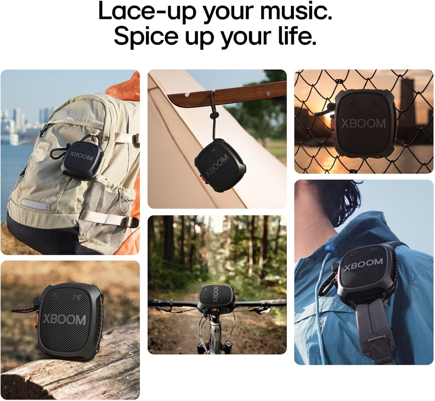 Lleva la banda sonora de tu vida en cualquier viaje con el ultra compacto, pero potente XG2T. Este altavoz duradero no solo resiste los elementos del aire libre, sino que también viene con una cuerda ajustable que facilita su fijación a mochilas, bicicletas y tiendas. ¹Pasó 7 diferentes pruebas MIL-STD 810H para durabilidad realizadas por un laboratorio independiente en EE. UU. que cumple con los estándares militares de EE. UU. (noviembre de 2023). Cumple con los siguientes métodos para MIL-STD-810H: Método 506.6 Lluvia (Procedimiento III – Goteo); Método 501.7 Alta Temperatura (Procedimiento II – Operación); Método 516.8 Choque (Procedimiento I – Choque funcional); Método 512.6 Inmersión (Procedimiento I – Inmersión); Método 509.7 Niebla salina; Método 510.7 Polvo soplado; Método 514.8, Categoría 4 – Vibración. El dispositivo puede no funcionar como se probó en todas las condiciones. Prueba realizada en un entorno controlado. No intente. ²Probado en condiciones de laboratorio controladas con una clasificación de IP67 bajo la norma IEC 60529. Hermético al polvo y resistente al agua hasta 1 metro durante 30 minutos. Provado en agua dulce. Séquelo antes de usarlo. No cargue mientras esté mojado. ³Basado en pruebas internas con nivel de volumen del 50%, Bluetooth encendido, modo de sonido EQ estándar y sin iluminación. El tiempo real de uso y el rendimiento de la batería pueden variar según la conectividad de la red y el uso de la aplicación.