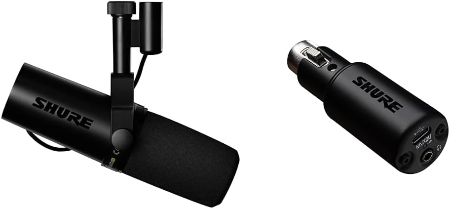 Shure SM7dB Dynamic Vocal Microphone w/Built-in Preamp for Streaming, Podcast, & Recording + Shure MVX2U XLR-to-USB Digital Interface with Headphone Jack, Integrated Pre-amp with 60dB Gain Control