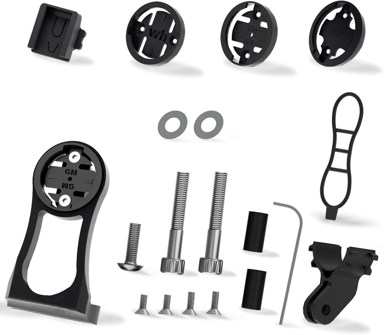 PACKAGE INCLUDES - Considering that bike owners may have multiple bike computers, action cameras, bike lights, we have carefully designed as many options and accessories as possible to provide you with greater convenience. You can use several devices at the same time on the bike mount or change different bike computers. Our bike mount kit includes 1 out front mount with base; 1 light clip; 4 mount adapter inserts(for Garmin Wahoo Bryton Cateye); mounting screws; installation tool.