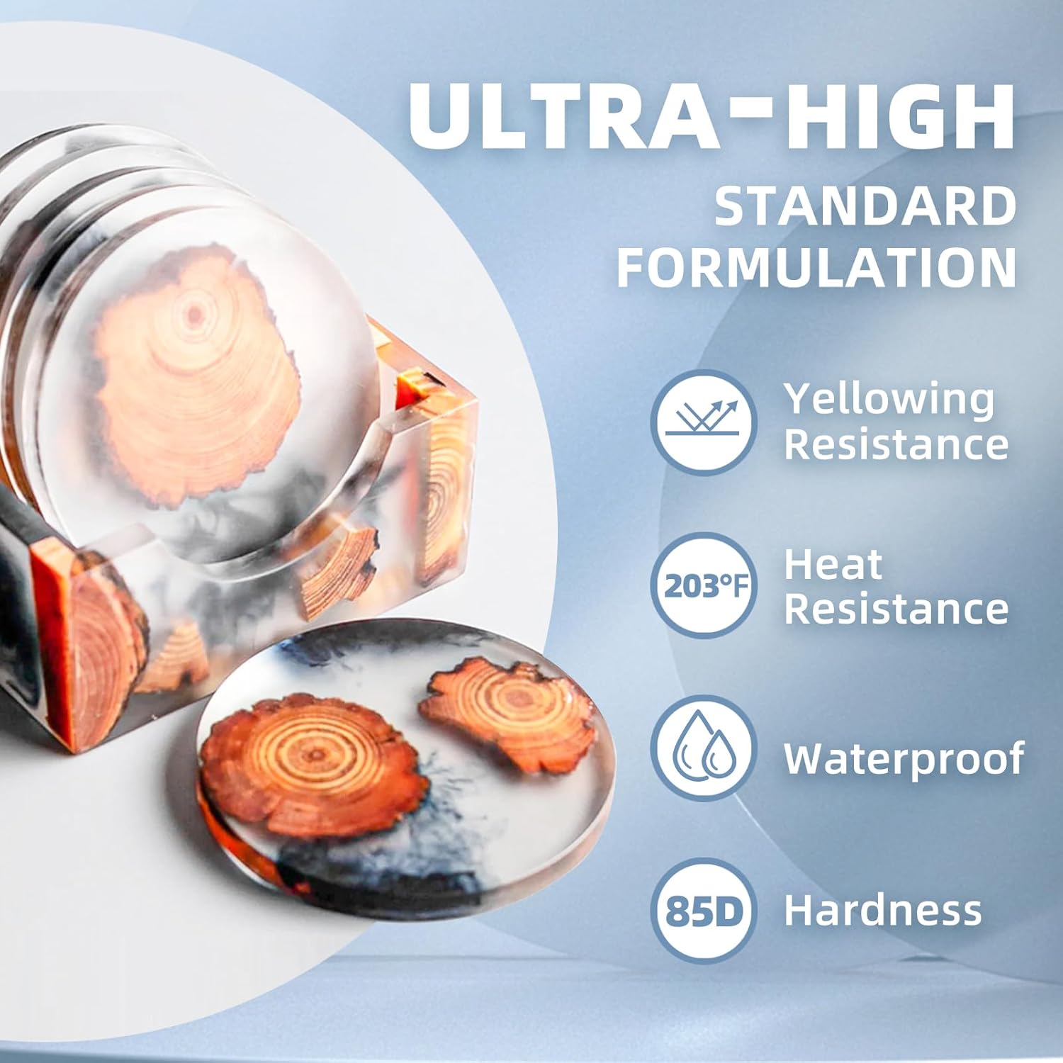 SUITABLE FOR BEGINNERS & PROS - 40 minutes working time allows you to create what you want,after this time it becomes scratch resistant, advanced additive resistant to heat up to 203℉ (95℃). Our casting and coasting resin are suitable for All kinds of DIY craft projects such as making jewelry, coasters, tumbles, table tops, countertop, painting, etc. And it fits perfectly with silicone molds, not causing molds tearing.