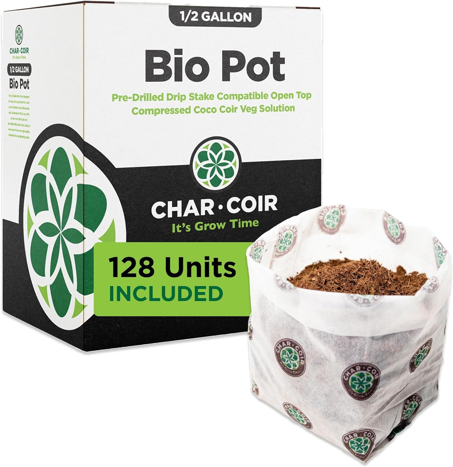 Trusted by commercial and home growers worldwide, Char Coir is known for delivering the cleanest, most consistent coco coir substrate available. Char Coir Bio Pot delivers a premium, 100% RHP-certified coco coir medium for optimal growth. This peat-free, high-pith ratio coir facilitates strong root development, while its superior water retention and aeration ensure optimal moisture and oxygen levels. Triple-washed and buffered, our coco coir Bio Pot maintains a low EC and stable pH, ensuring a clean, pathogen-free environment that's free from excess salts or nutrient imbalances. The Bio Pot is wrapped in a fabric exterior and is designed with pre-drilled holes for drip-stake compatibility, making the growing process clean and mess-free. Sustainably sourced from a single farm for consistent quality, Bio Pot is eco-friendly, supporting responsible growing practices. Ideal for indoor or outdoor plants, flowers, vegetables and hydroponics, its the preferred choice for professionals and hobbyists alike. Elevate your grow with Char Coir Bio Pot—the ultimate growing medium. 2025