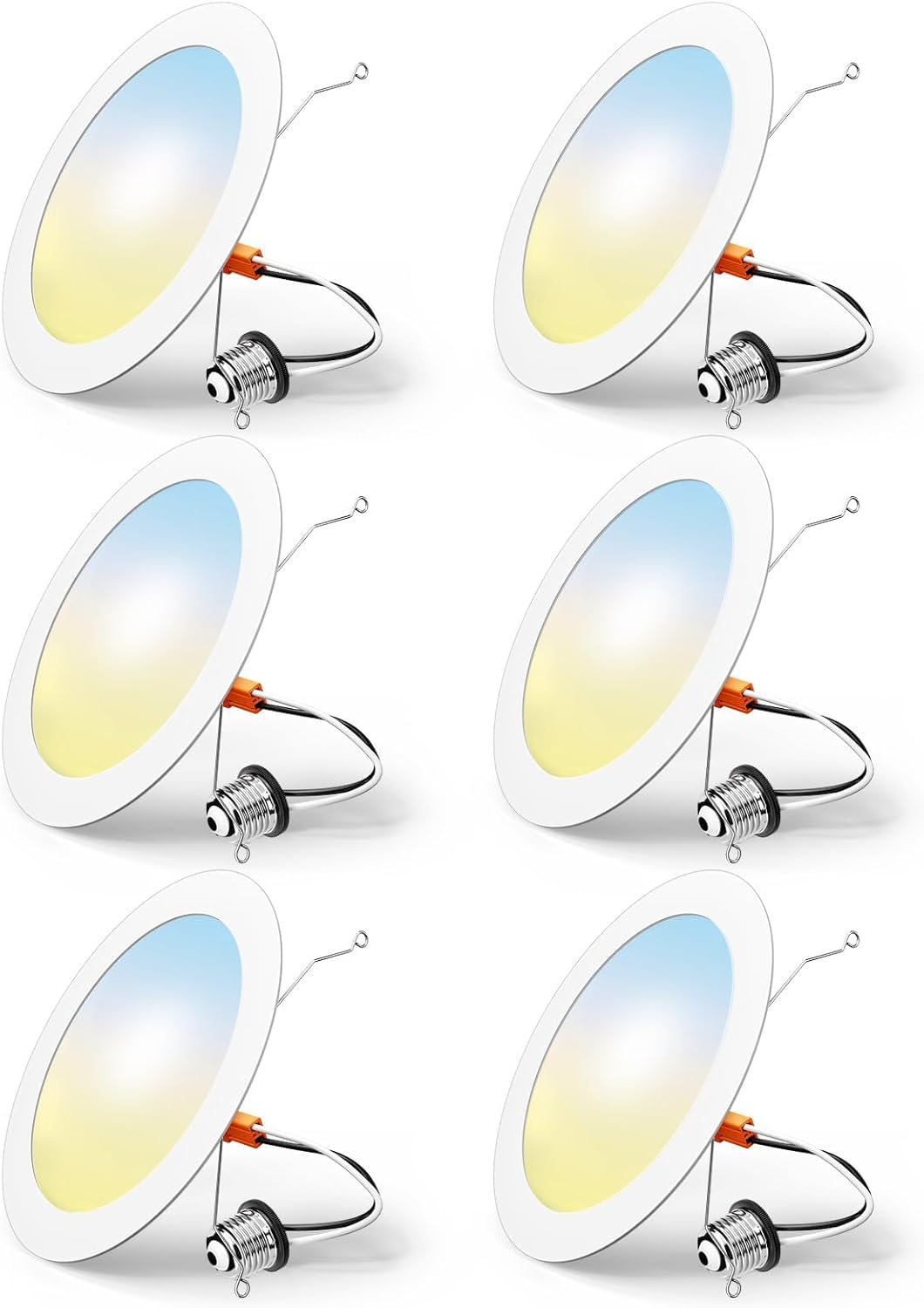 FREELICHT 6 Pack Retrofit LED Recessed Lighting 6 Inch, Selectable 2700K/3000K/4000K/5000K/6000K, Dimmable Flat LED Can Lights, 10W=110W, 1000LM, IC & Damp Rated, ETL & FCC, White