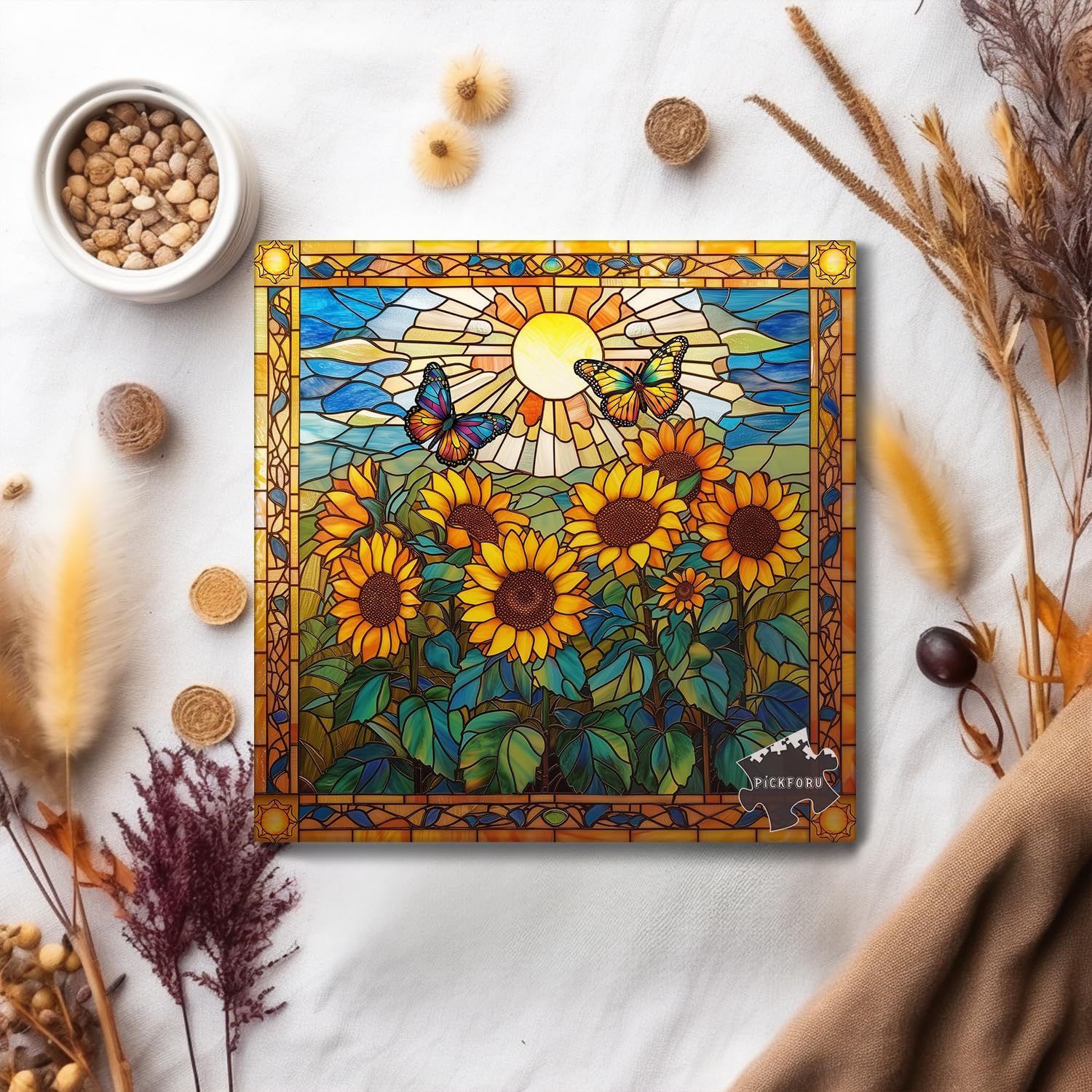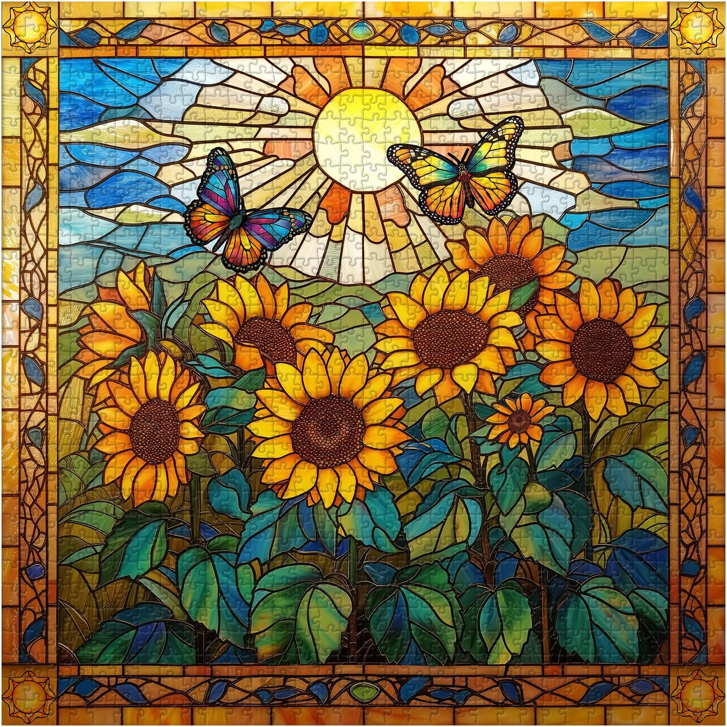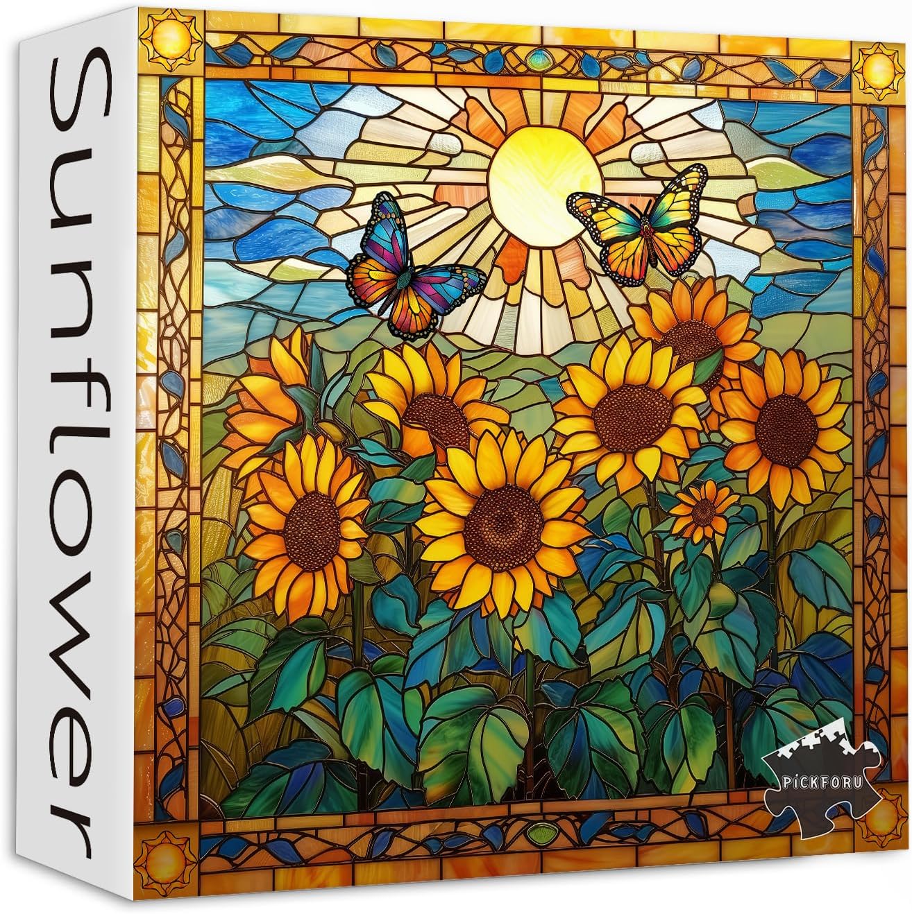 Stained Glass Puzzles for Adults 1000 Pieces and up, PICKFORU Sunflowers Puzzle as Home Decor, Butterfly Flower Puzzles as Home Decor