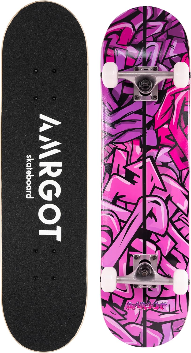 Skateboards for Beginners,31 * 8 inches Complete Skateboards for Kids,Boys,Girls and Adults,7 Layer Maple Wood,Double Kick Deck Concave Standard and Tricks Skateboard