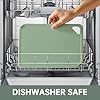 EASY TO CLEAN AND CONVENIENT USE: Our kitchen chopping boards are BPA-free, so they can be directly put into the dishwasher after use. Or wash them by hand with soap as your needed to easily remove stains. Each green cutting board is equipped with a triangular handle for easy access and storage, and can also be hung in your camper or truck for use.