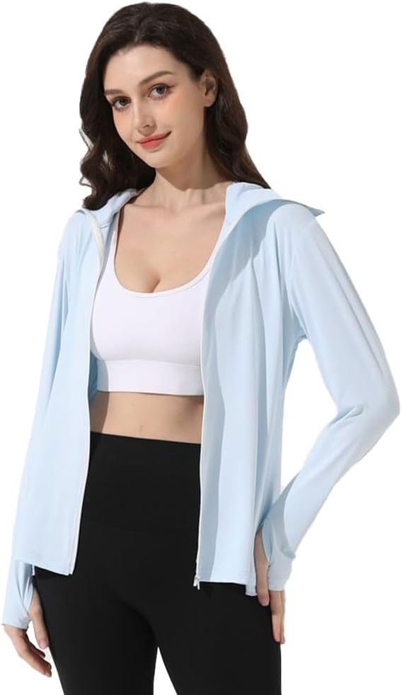 Mingyuezai Women's UPF 50+ Sun Protection Jacket Hooded Lightweight Long Sleeve Sun Shirt for Hiking Outdoor