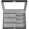 [16 Spacious Slots] This 16-slot watch box offers enough space for your growing watch and sunglasses collection. Each slot is spacious and can fit different types of watches with a display size up to 48 mm